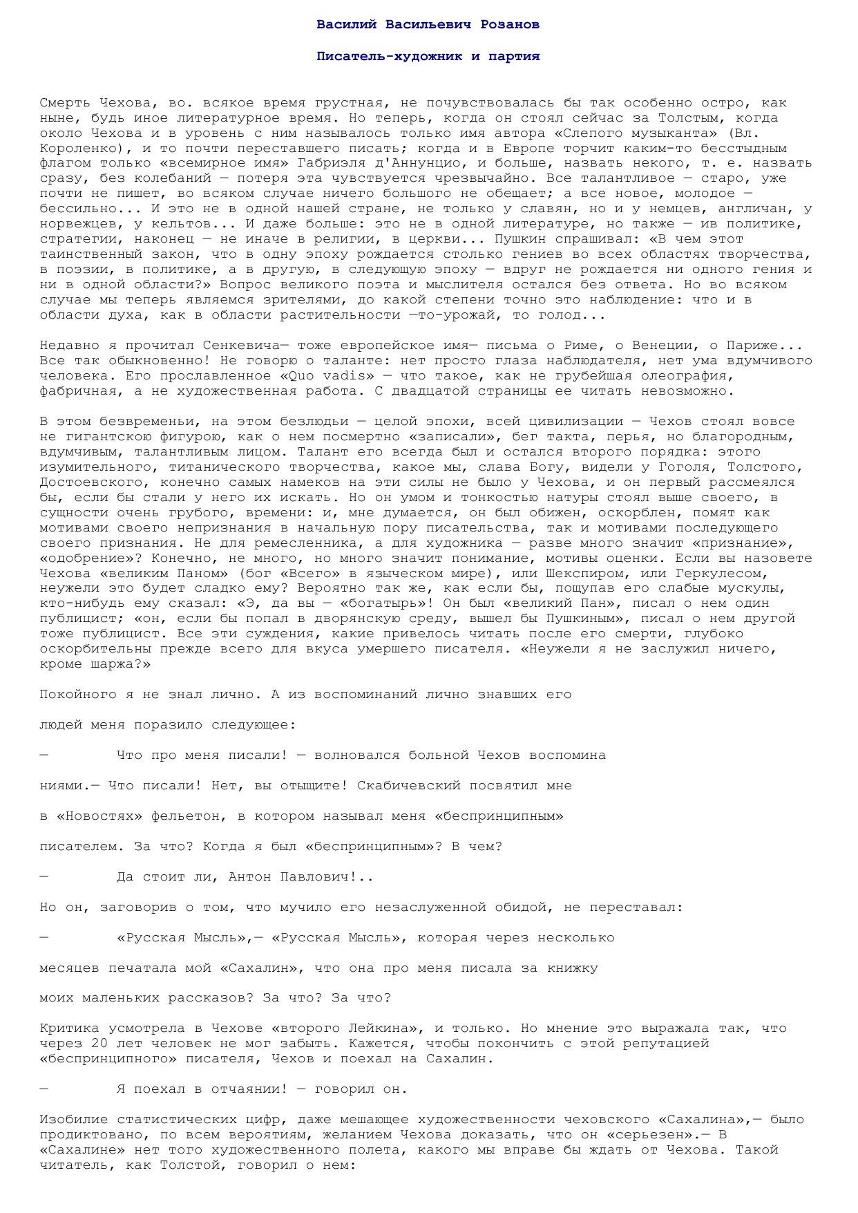 Писатель-художник и партия <Чехов>