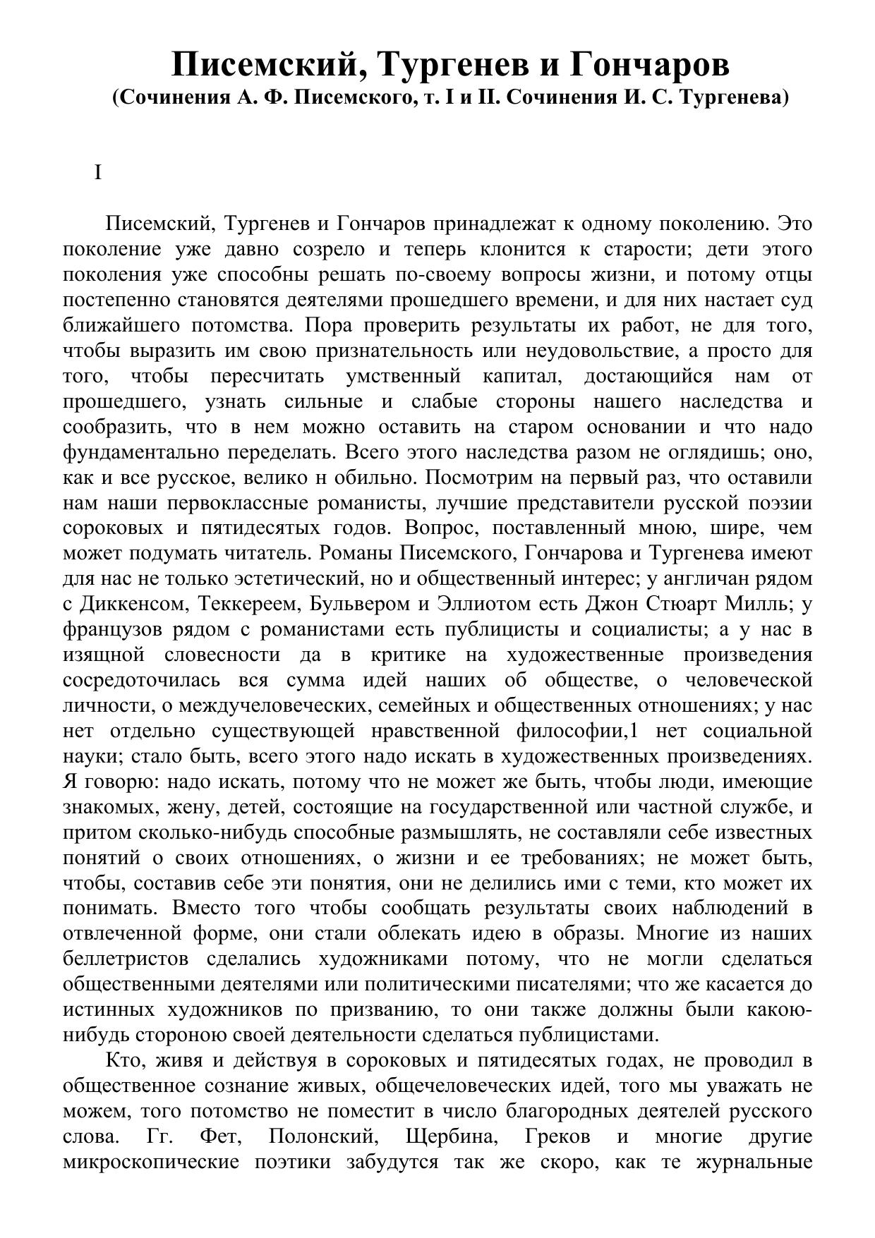 Писемский, Тургенев и Гончаров