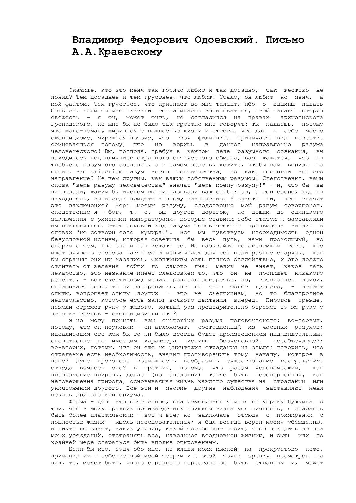 Письмо А.А.Краевскому