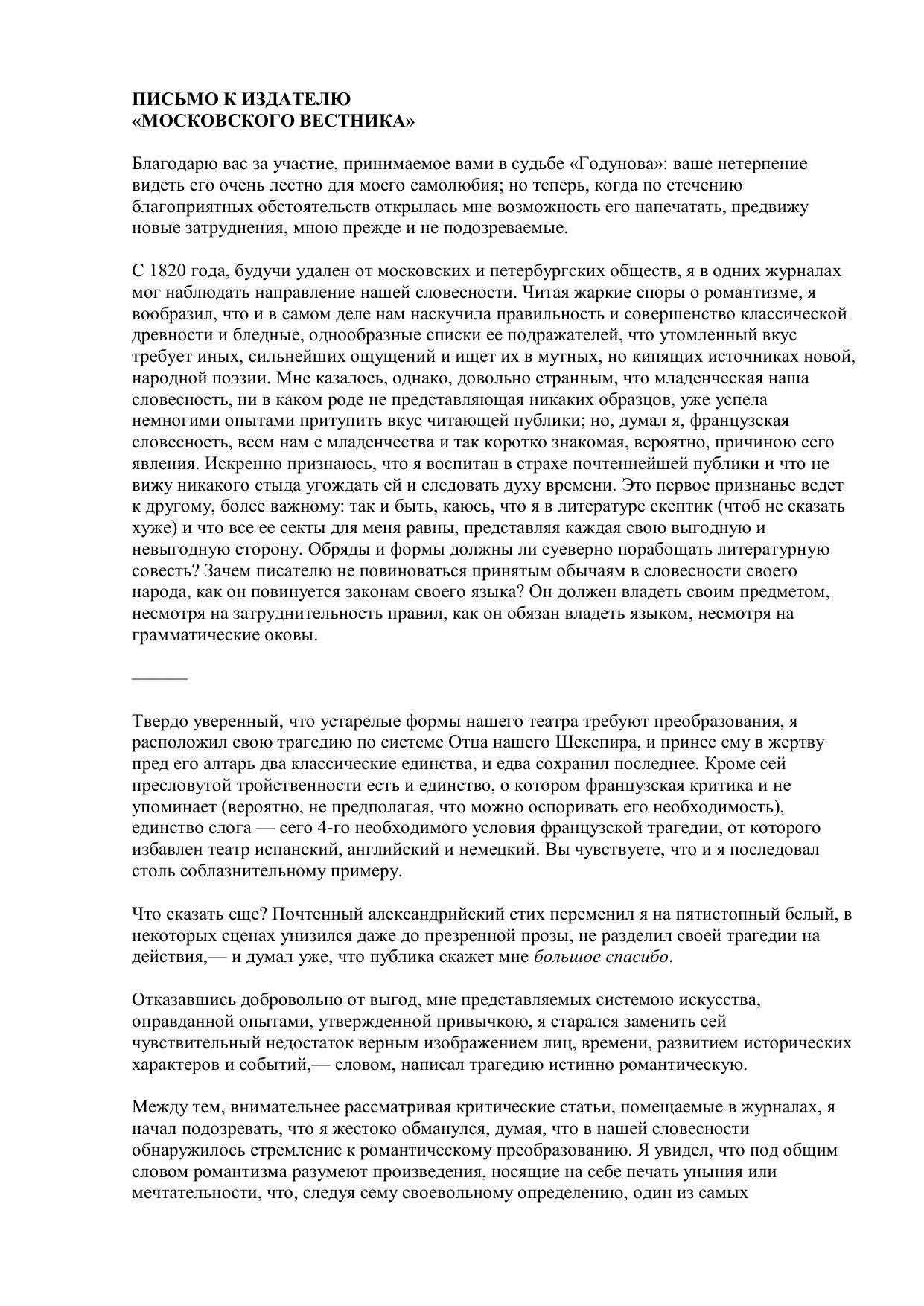 Письмо к издателю "Московского вестника"