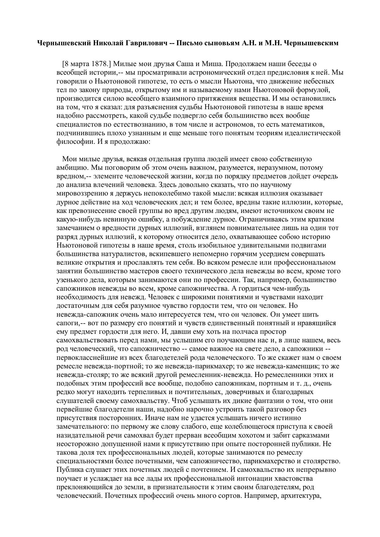 Письмо сыновьям А.Н. и М.Н. Чернышевским
