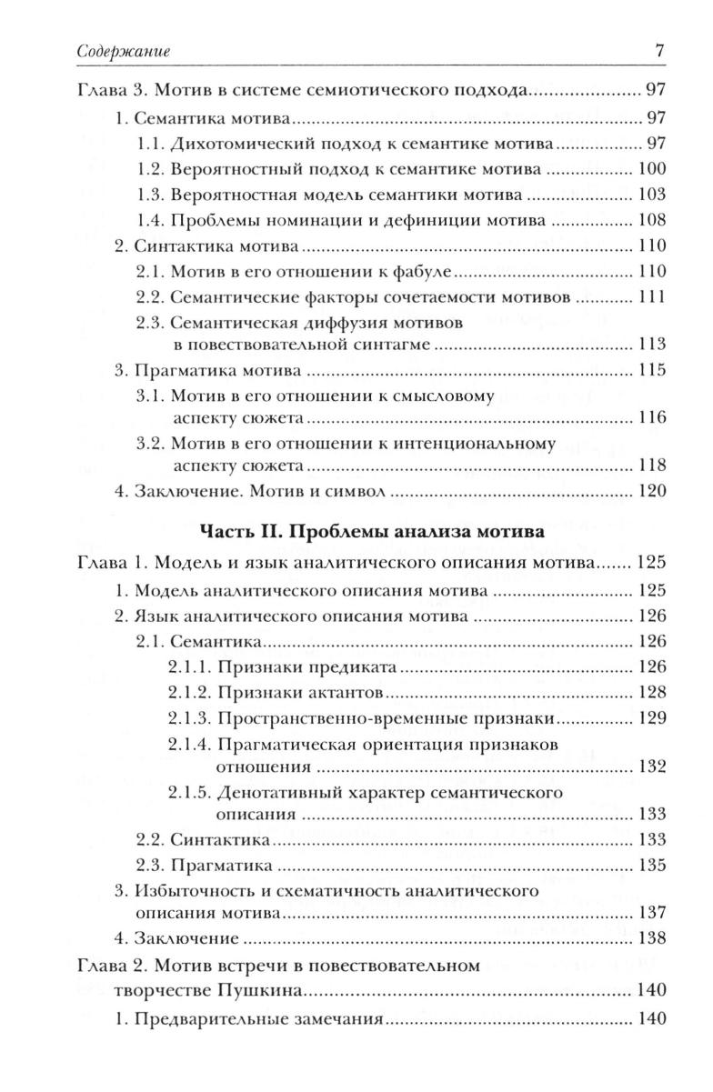 В книге развернуто исследование мотива в его отношении к категориям нарратива, события и действия, фабулы и сюжета, хронотопа и темы, героя и персонажа. Сформулировано системное определение мотива как основной единицы повествовательного языка литературы. Проведен семиотический анализ мотива в аспектах его семантики, синтактики и прагматики и разработана вероятностная модель функционирования мотива в художественном повествовании. Изучены отношения между инвариантным значением мотива и его вариантной семантикой. Исследованы связи между семантикой мотива и особенностями его сочетаемости в нарративе. Сформулированы понятия сюжетного смысла и интенции мотива, важные для понимания его роли в художественной литературе. Раскрыты принципы аналитического описания мотива и проведен его анализ в составе целостного повествовательного ряда (мотив встречи в повествовательном творчестве Пушкина). Полученные данные, с учетом их вариантных и вероятностных характеристик, типологически обобщены и представлены в виде виртуального знакового целого мотива встречи, взятого в системе его событийных реализаций в рамках пушкинской художественной прозы.