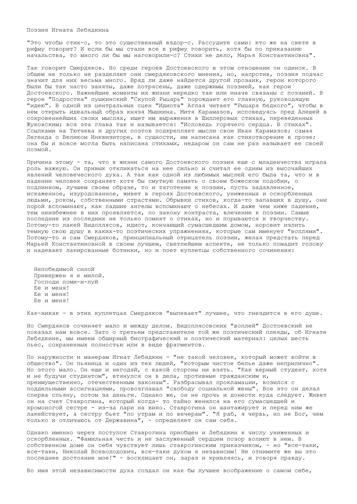 Поэзия Игната Лебядкина