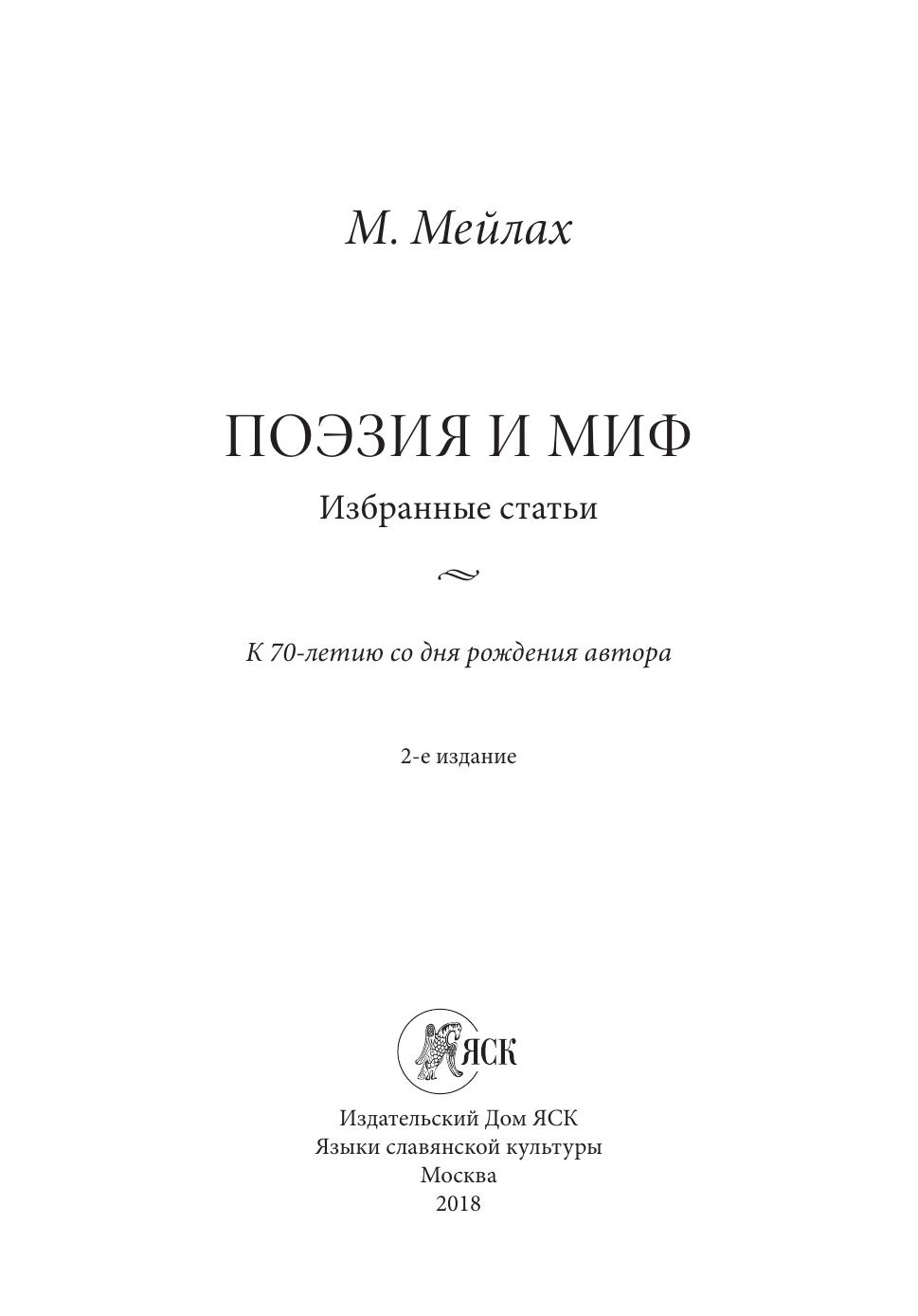 Поэзия и миф. Избранные статьи