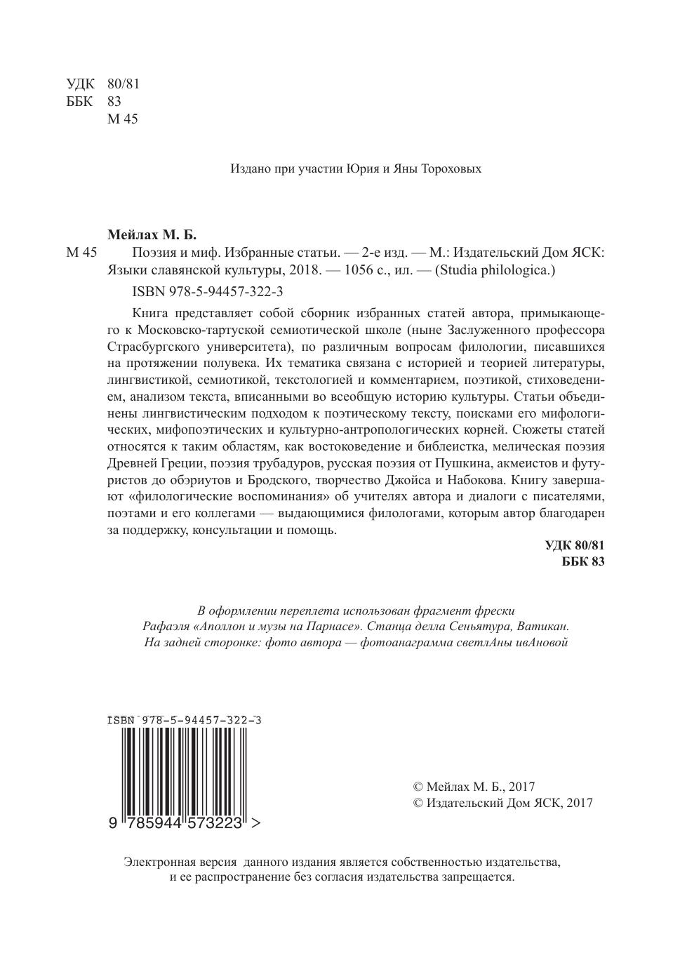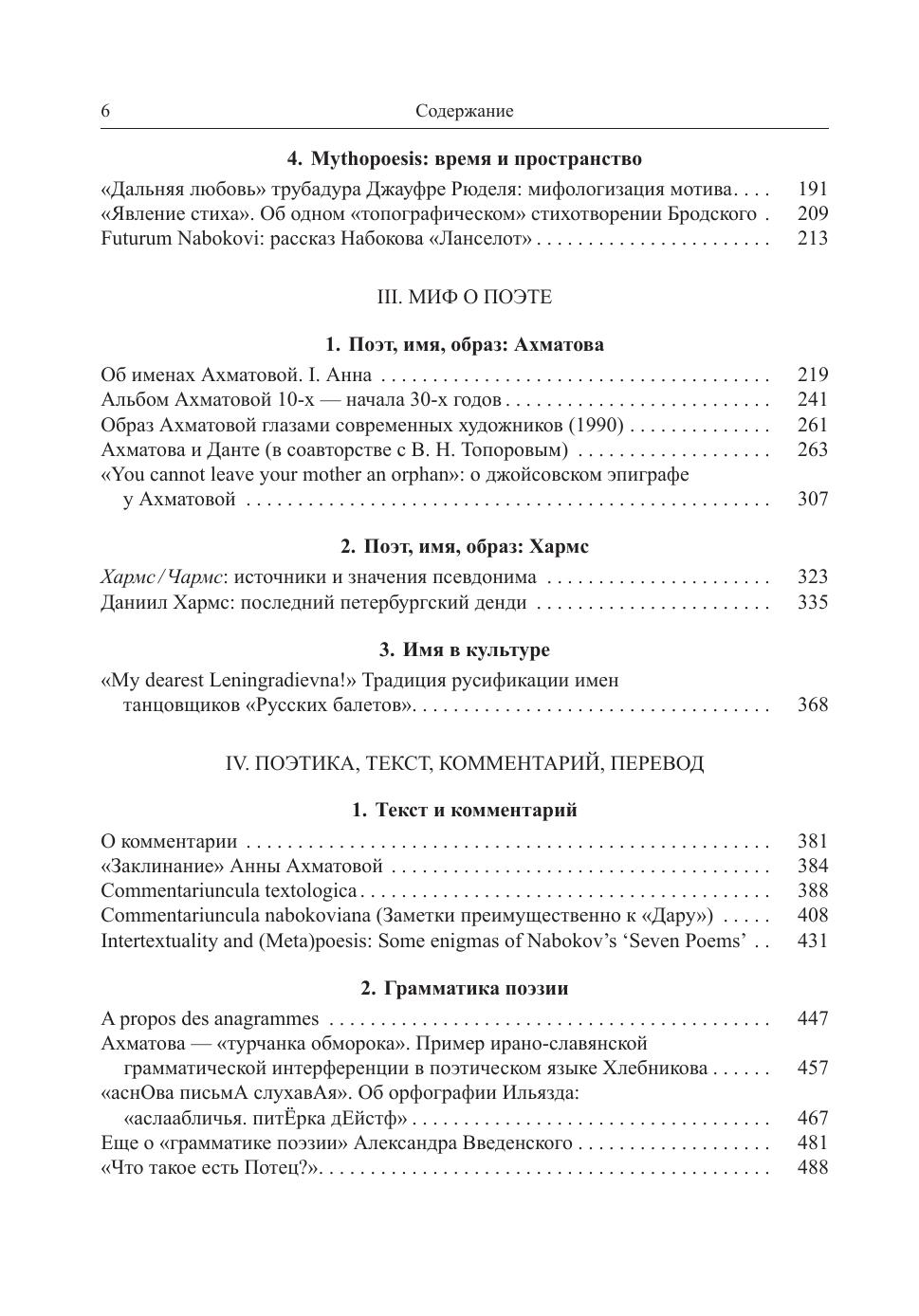 Книга представляет собой сборник избранных статей автора, примыкающего к Московско-тартуской семиотической школе (ныне Заслуженного профессора Страсбургского университета), по различным вопросам филологии, писавшихся на протяжении полувека. Их тематика связана с историей и теорией литературы, лингвистикой, семиотикой, текстологией и комментарием, поэтикой, стиховедением, анализом текста, вписанными во всеобщую историю культуры. Статьи объединены лингвистическим подходом к поэтическому тексту, поисками его мифологических, мифопоэтических и культурно-антропологических корней. Сюжеты статей относятся к таким областям, как востоковедение и библеистка, мелическая поэзия Древней Греции, поэзия трубадуров, русская поэзия от Пушкина, акмеистов и футуристов до обэриутов и Бродского, творчество Джойса и Набокова. Книгу завершают «филологические воспоминания» об учителях автора и диалоги с писателями, поэтами и его коллегами — выдающимися филологами, которым автор благодарен за поддержку, консультации и помощь.