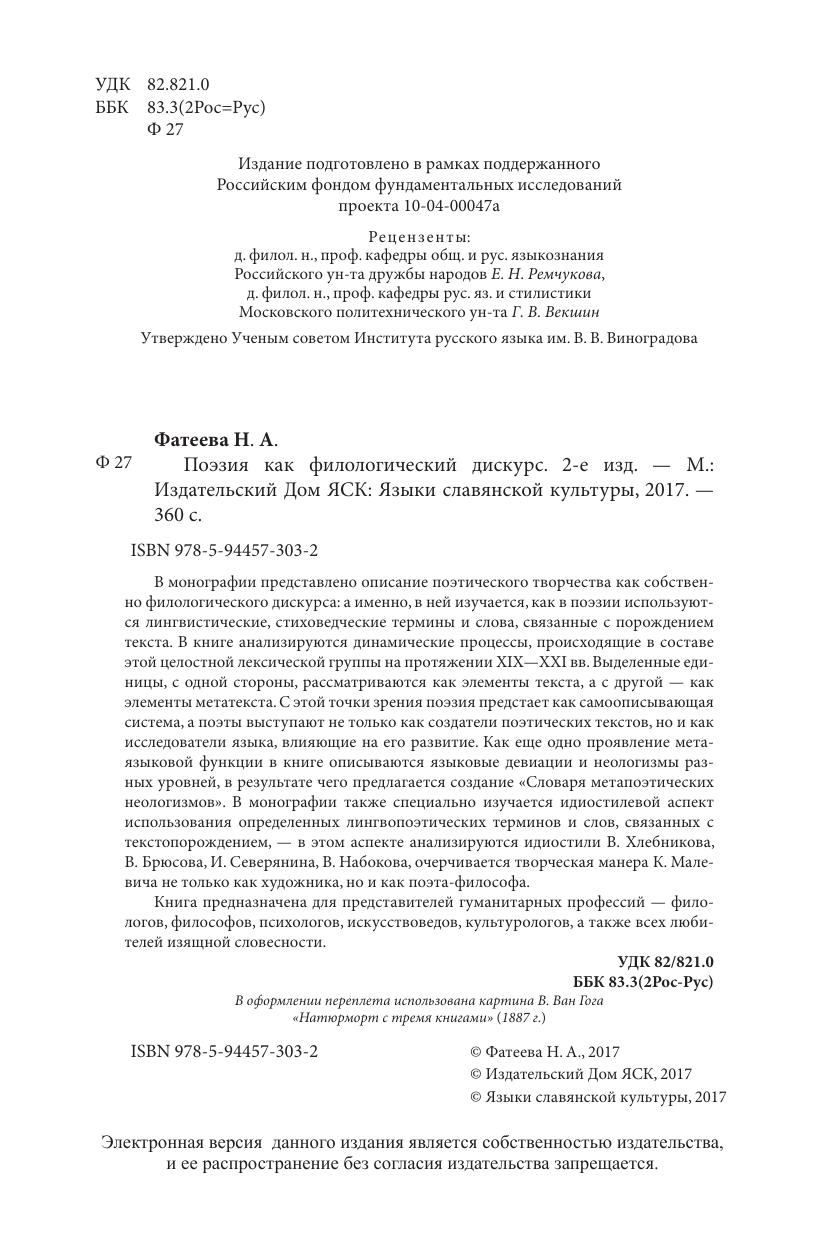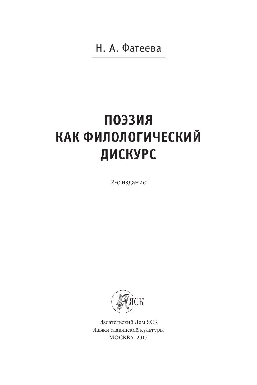 Поэзия как филологический дискурс