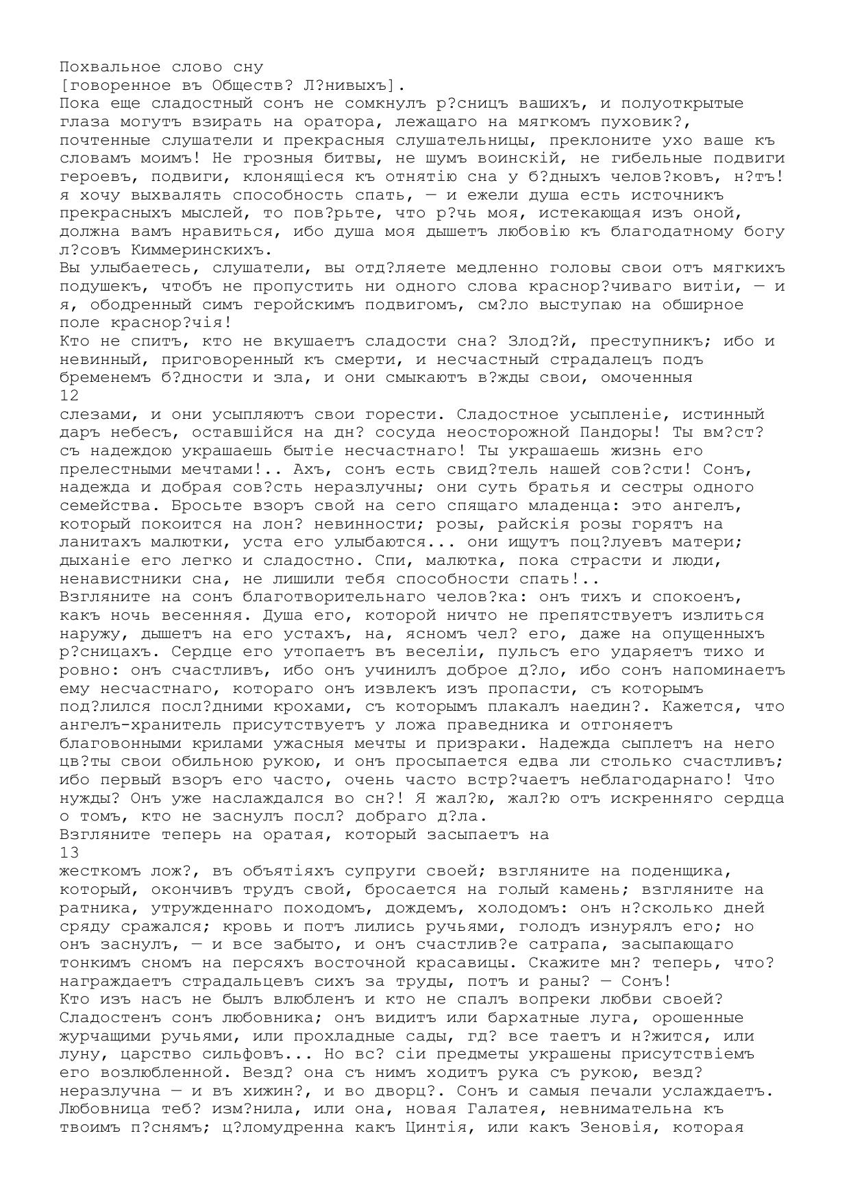 Похвальное слово сну. (Письмо редактору "Вестника Европы")