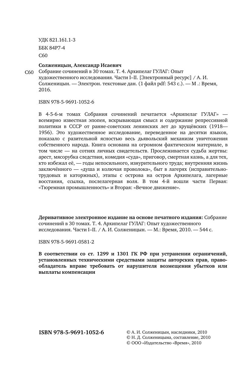 В 4-5-6-м томах Собрания сочинений печатается Архипелаг ГУЛАГ всемирно известная эпопея, вскрывающая смысл и содержание репрессивной политики в СССР от ранне-советских ленинских лет до хрущёвских (1918-1956). Это художественное исследование, переведенное на десятки языков, показало с разительной ясностью весь дьявольский механизм уничтожения собственного народа. Книга основана на огромном фактическом материале, в том числе — на сотнях личных свидетельств. Прослеживается судьба жертвы: арест, мясорубка следствия, комедия суда, приговор, смертная казнь, а для тех, кто избежал её, — годы непосильного, изнурительного труда; внутренняя жизнь заключённого — душа и колючая проволока, быт в лагерях (исправительно-трудовых и каторжных), этапы с острова на остров Архипелага, лагерные восстания, ссылка, послелагерная воля.
