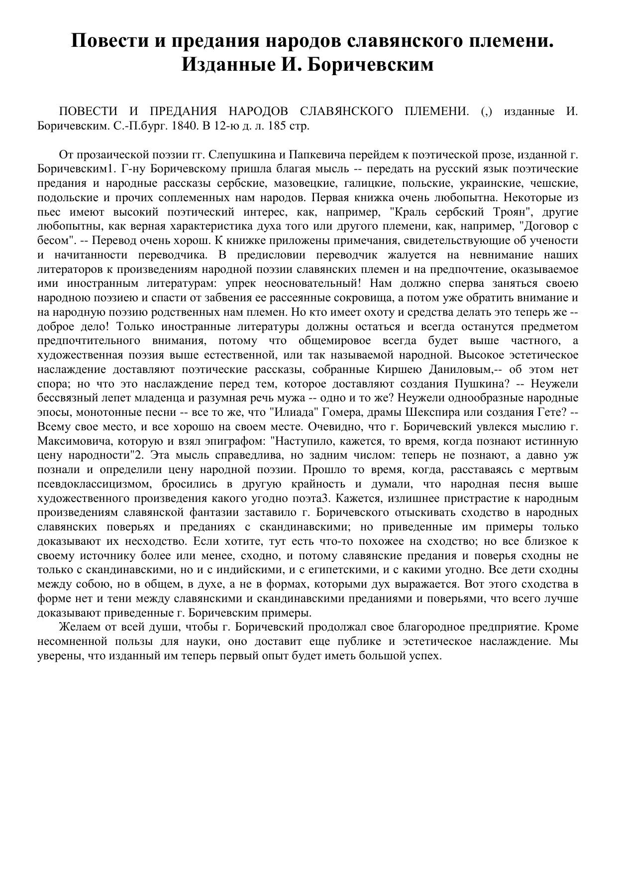 Повести и предания народов славянского племени., изданные И. Боричевским
