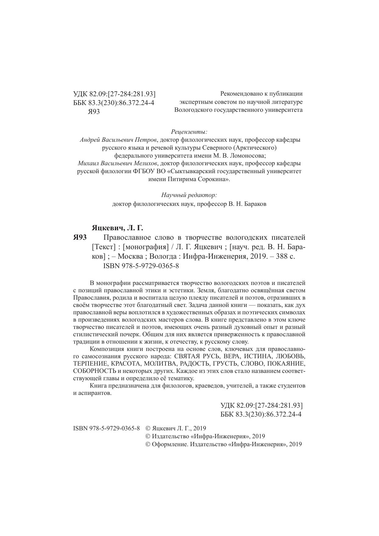 В монографии рассматривается творчество вологодских поэтов и писателей с позиций православной этики и эстетики. Земля, благодатно освящённая светом Православия, родила и воспитала целую плеяду писателей и поэтов, отразивших в своём творчестве этот благодатный свет. Задача данной книги - показать, как дух православной веры воплотился в художественных образах и поэтических символах в произведениях вологодских мастеров слова.