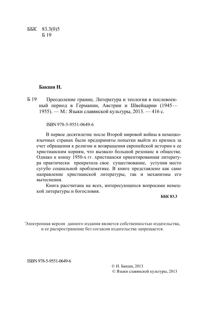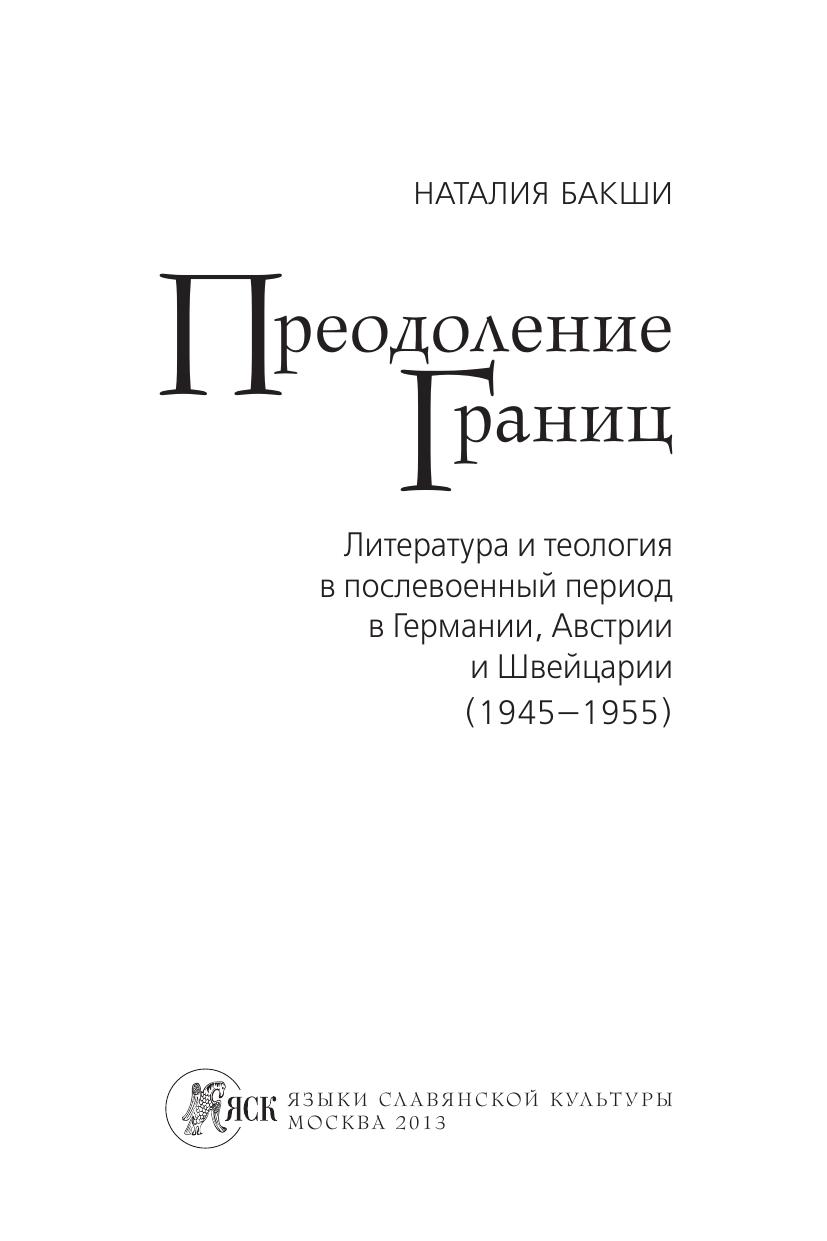 Преодоление границ. Литература и теология в послевоенный период в Германии, Австрии и Швейцарии