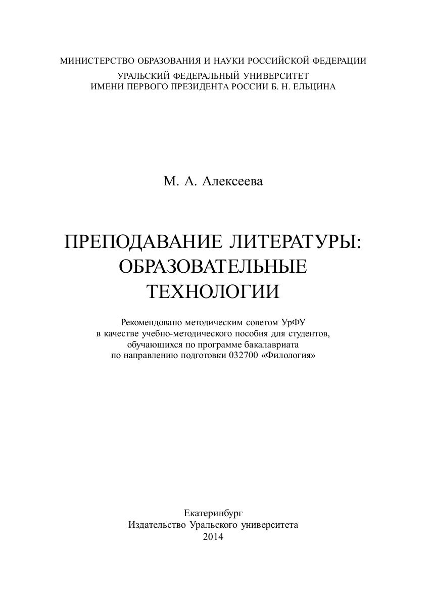 Преподавание литературы: образовательные технологии: учеб.-метод. пособие