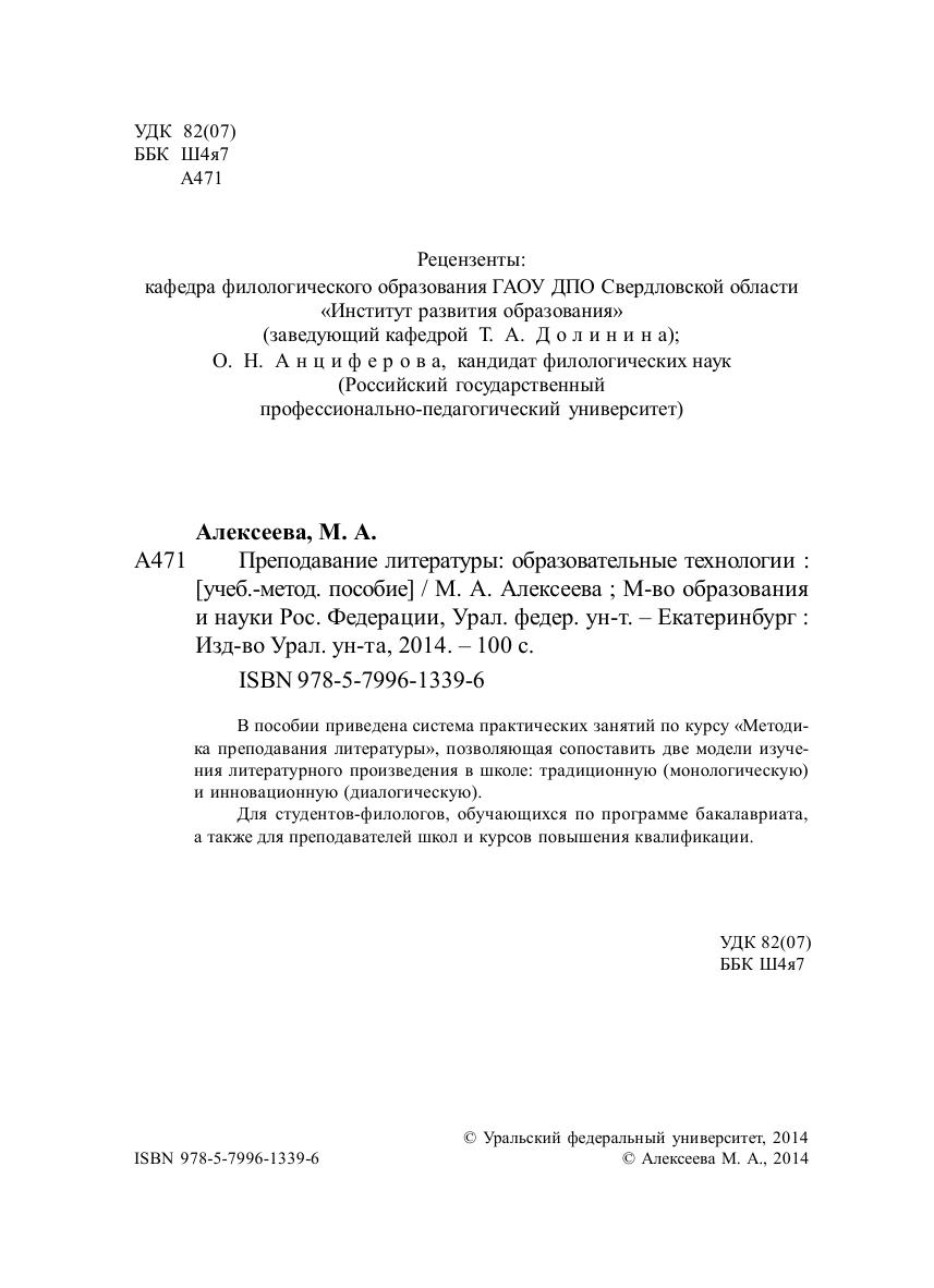В пособии приведена система практических занятий по курсу «Методика преподавания литературы», позволяющая сопоставить две модели изучения литературного произведения в школе: традиционную (монологическую) и инновационную (диалогическую). Для студентов-филологов, обучающихся по программе бакалавриата, а также для преподавателей школ и курсов повышения квалификации.