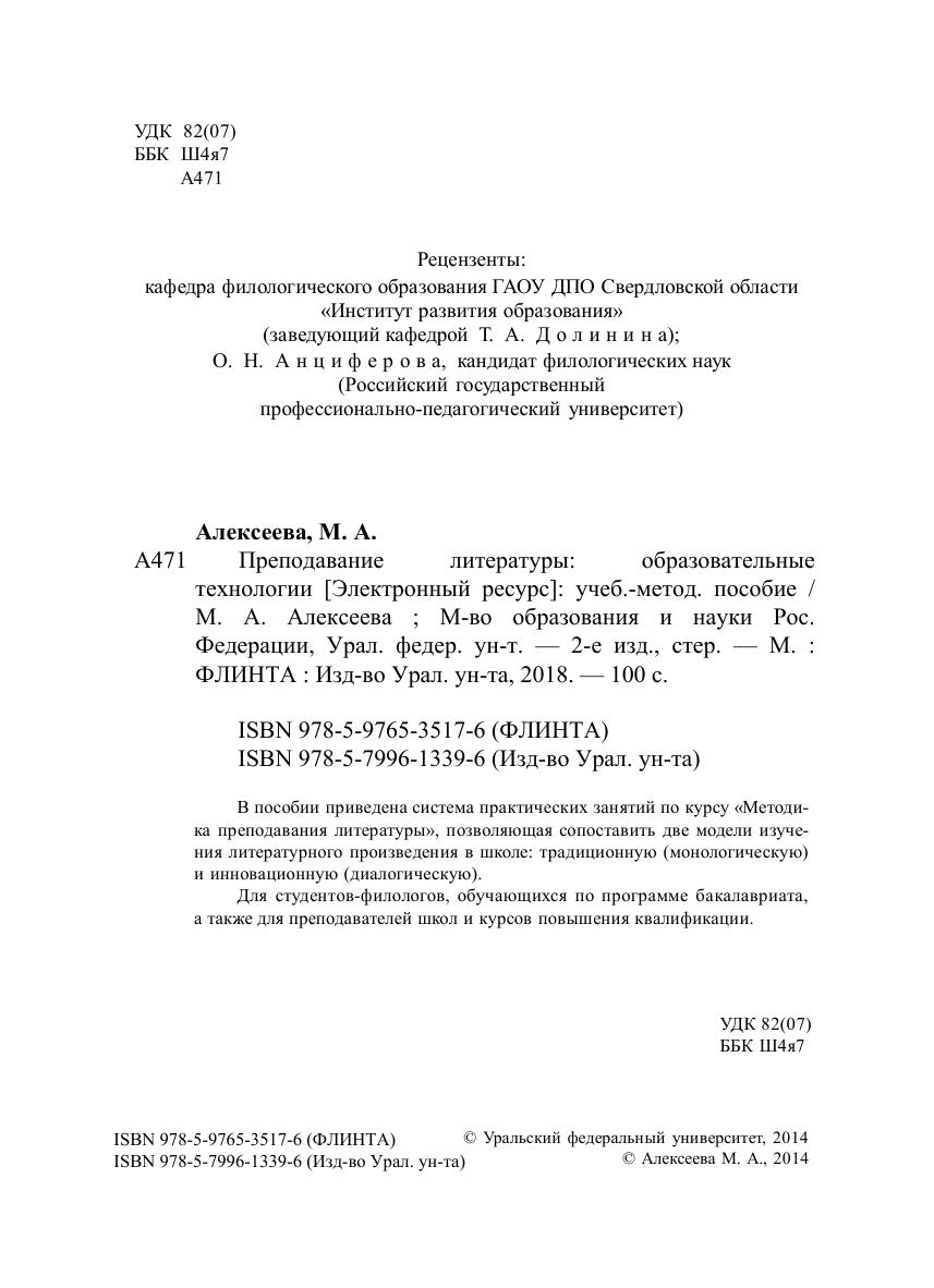 В пособии приведена система практических занятий по курсу «Методика преподавания литературы», позволяющая сопоставить две модели изучения литературного произведения в школе: традиционную (монологическую) и инновационную (диалогическую). Для студентов-филологов, обучающихся по программе бакалавриата, а также для преподавателей школ и курсов повышения квалификации.