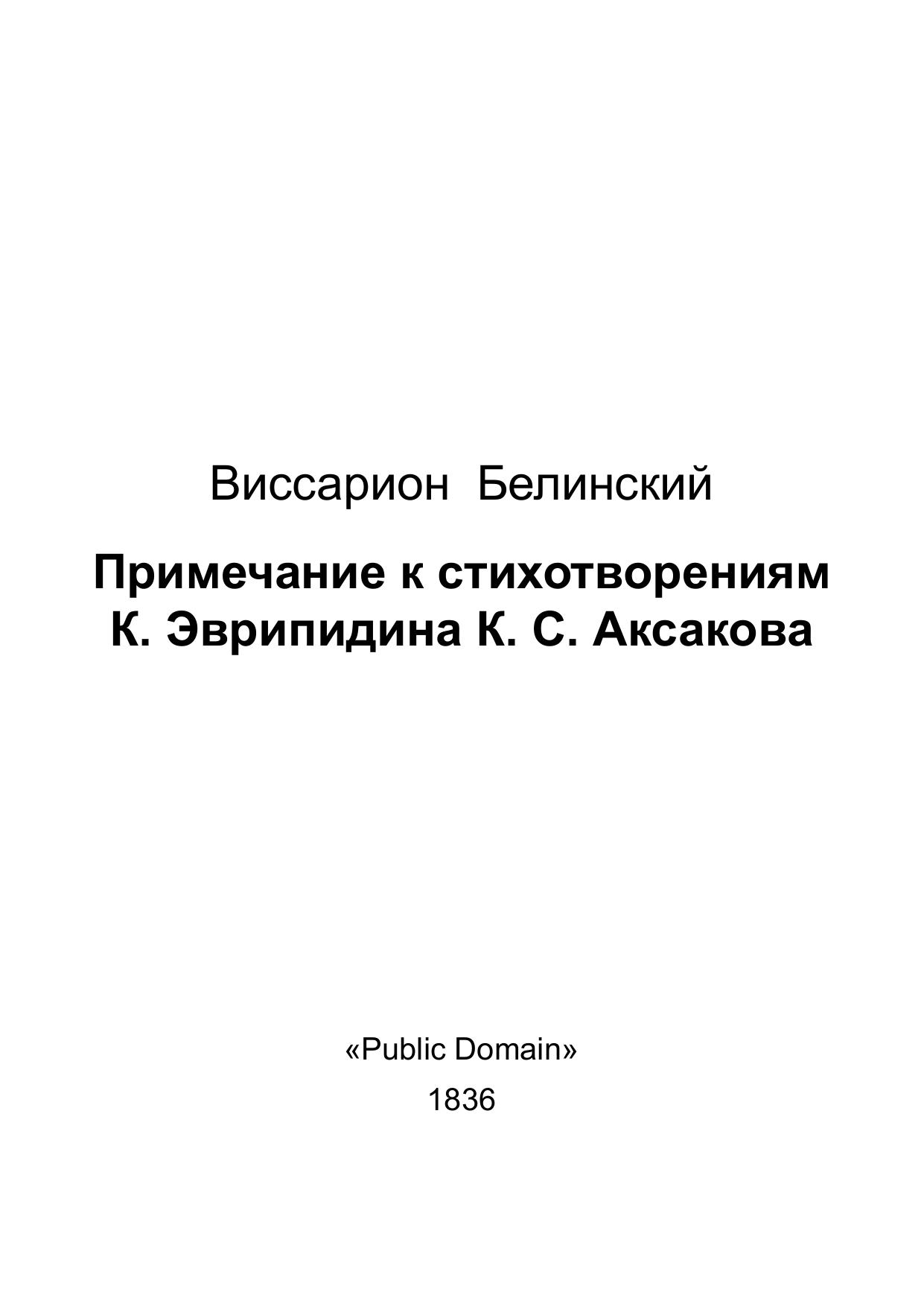 Примечание к стихотворениям К. Эврипидина К. С. Аксакова