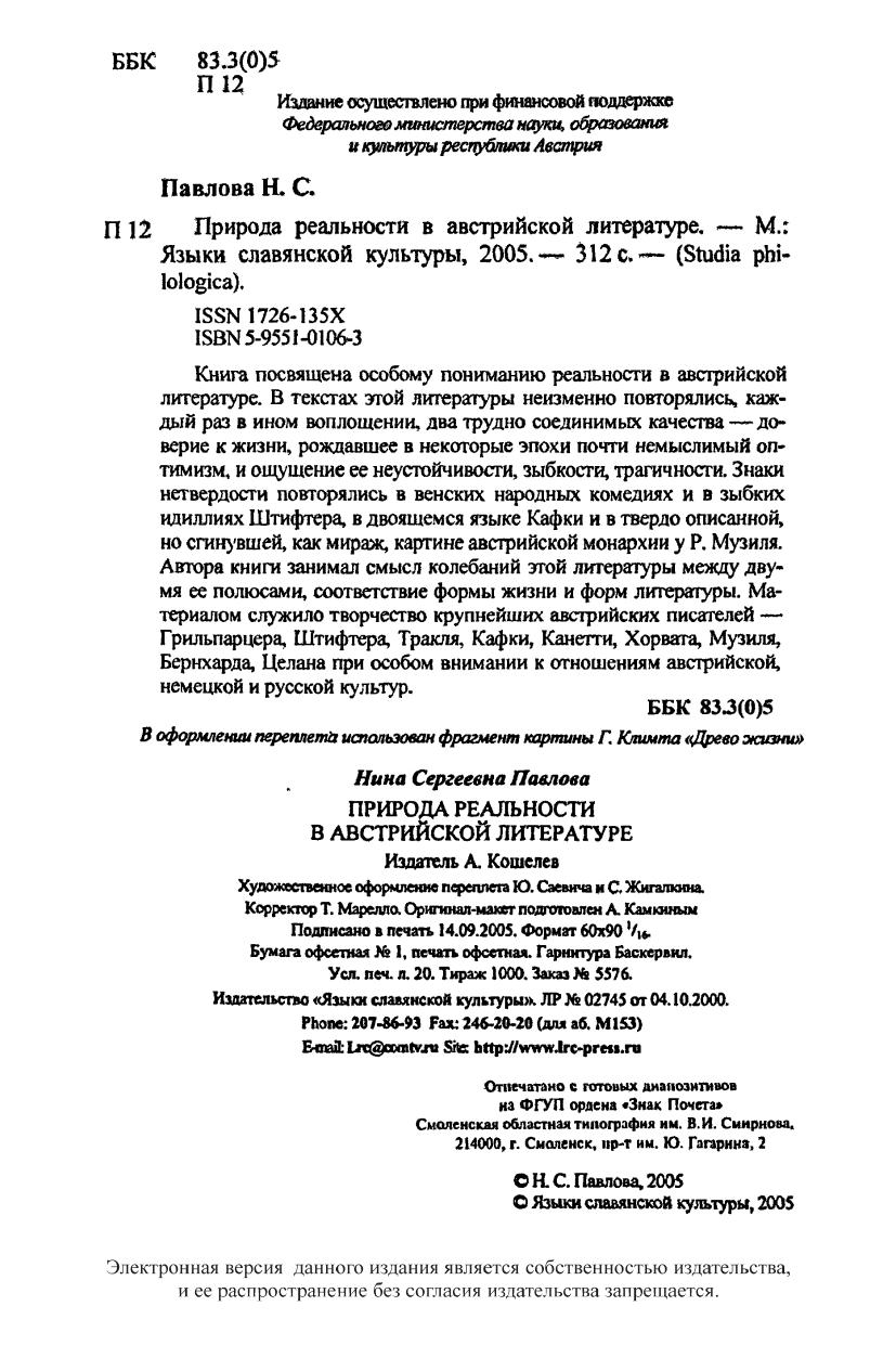 Книга посвящена особому пониманию реальности в австрийской литературе. В текстах этой литературы неизменно повторялись, каждый раз в ином воплощении, два трудно соединимых качества - доверие к жизни, рождавшее в некоторые эпохи почти немыслимый оптимизм, и ощущение ее неустойчивости, зыбкости, трагичности. Знаки нетвердости повторялись в венских народных комедиях и в зыбких идиллиях Штифтера, в двоящемся языке Кафки и в твердо описанной, но сгинувшей, как мираж, картине австрийской монархии у Р.Музиля. Автора книги занимал смысл колебаний этой литературы между двумя ее полюсами, соответствие формы жизни и форм литературы. Материалом служило творчество крупнейших австрийских писателей - Грильпарцера, Штифтера, Тракля, Кафки, Канетти, Хорвата, Музиля, Бернхарда, Целана при особом внимании к отношениям австрийской, немецкой и русской культур.