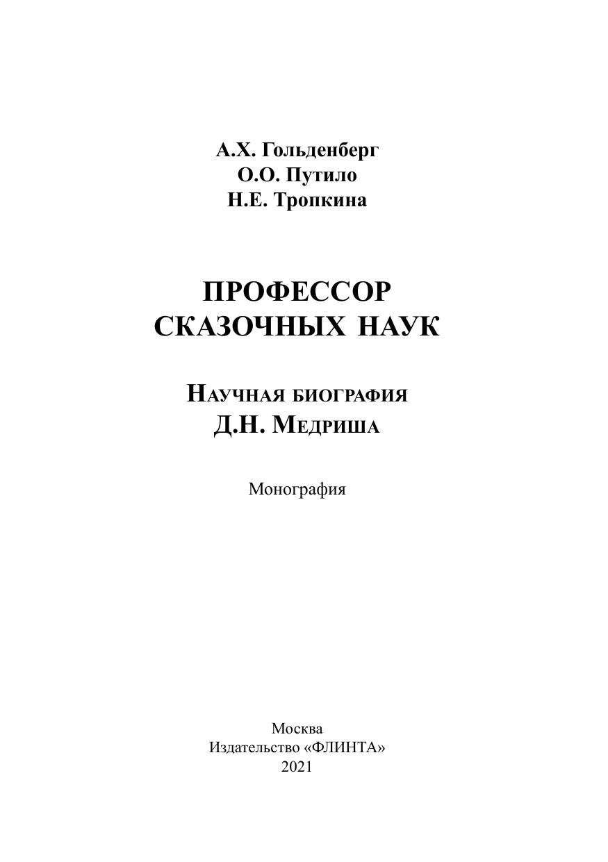 Профессор сказочных наук: научная биография Д.Н. Медриша