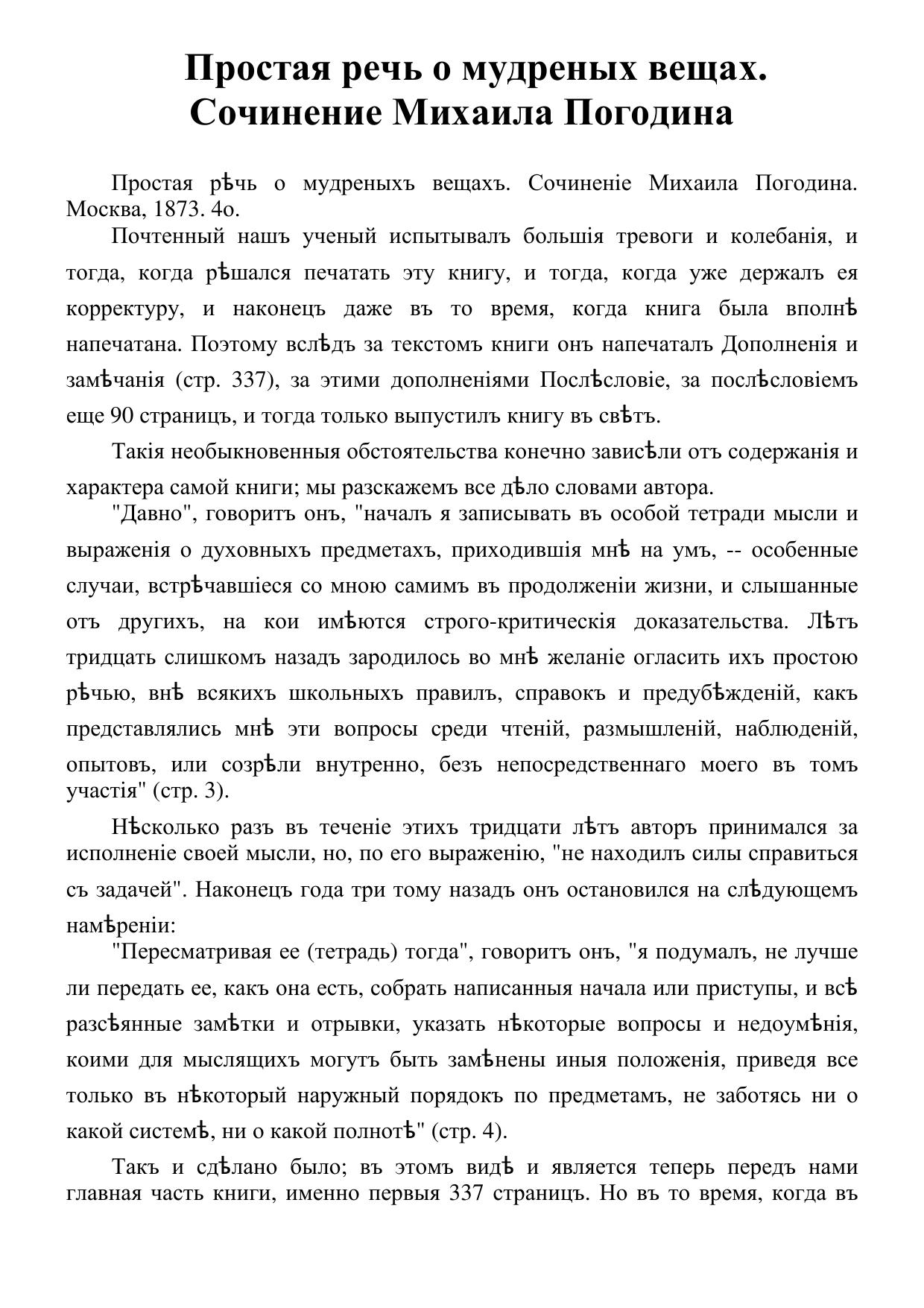 Простая речь о мудреных вещах. Сочинение Михаила Погодина