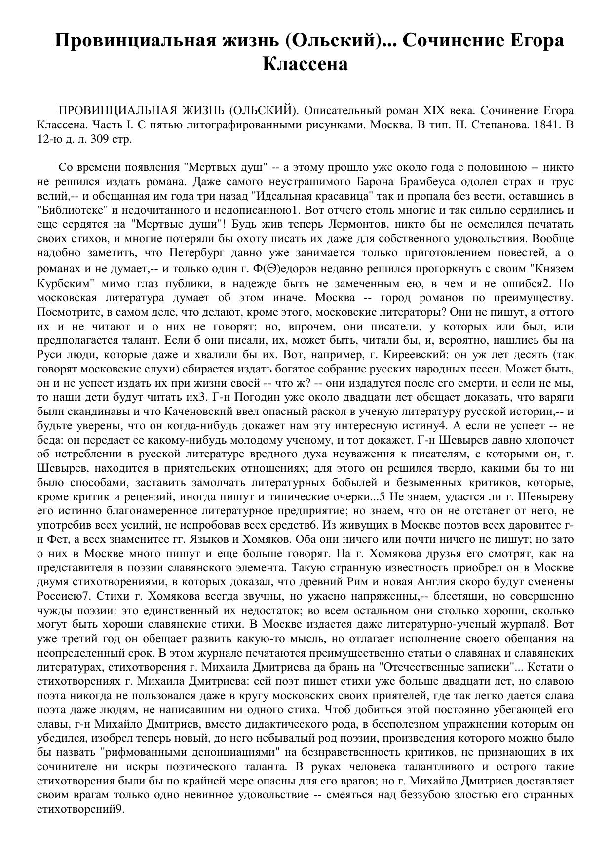 Провинциальная жизнь (Ольский)... Сочинение Егора Классена