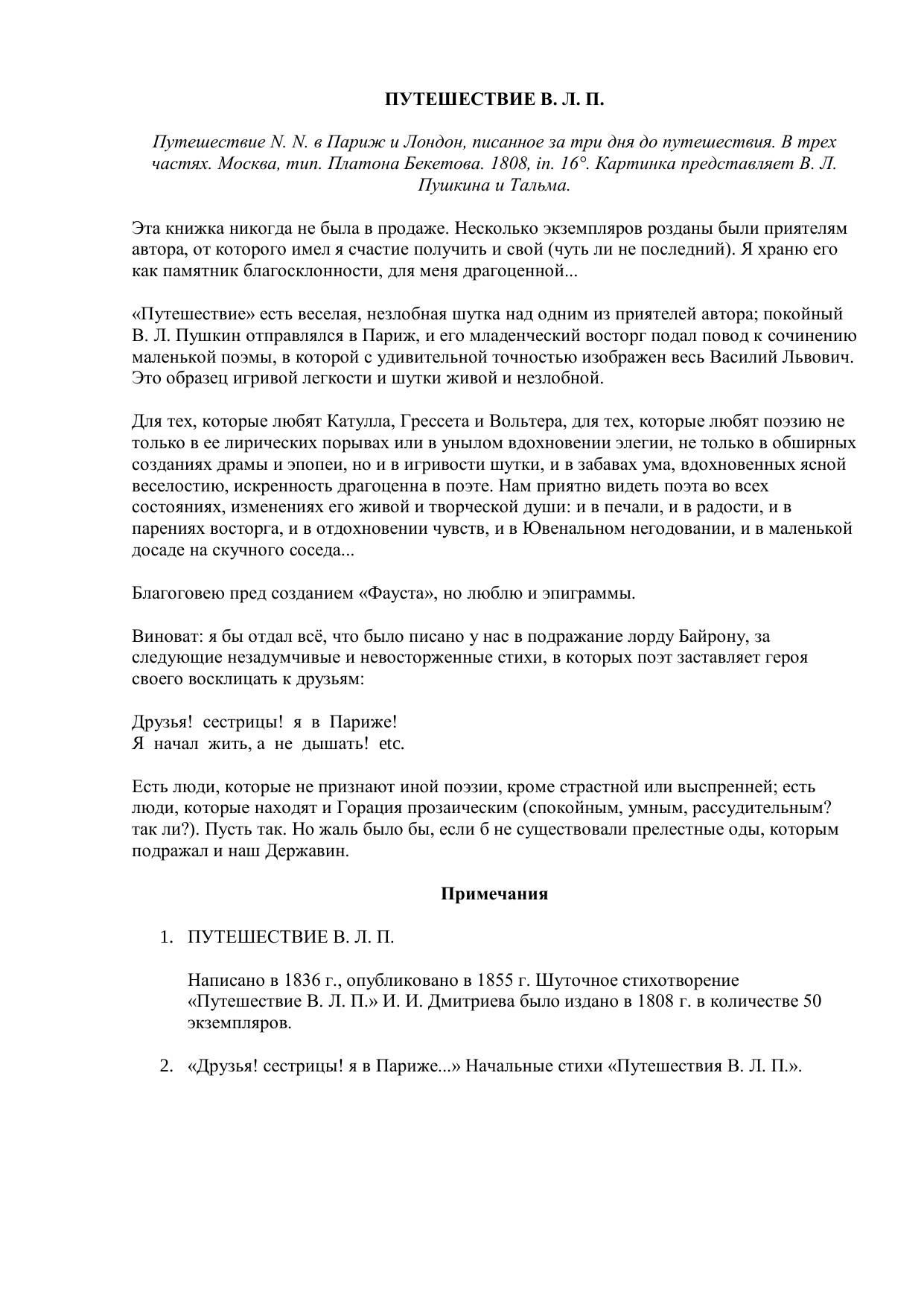 Путешествие В. Л. П (Путешествие N. N. в Париж и Лондон, писанное за три дня до путешествия)