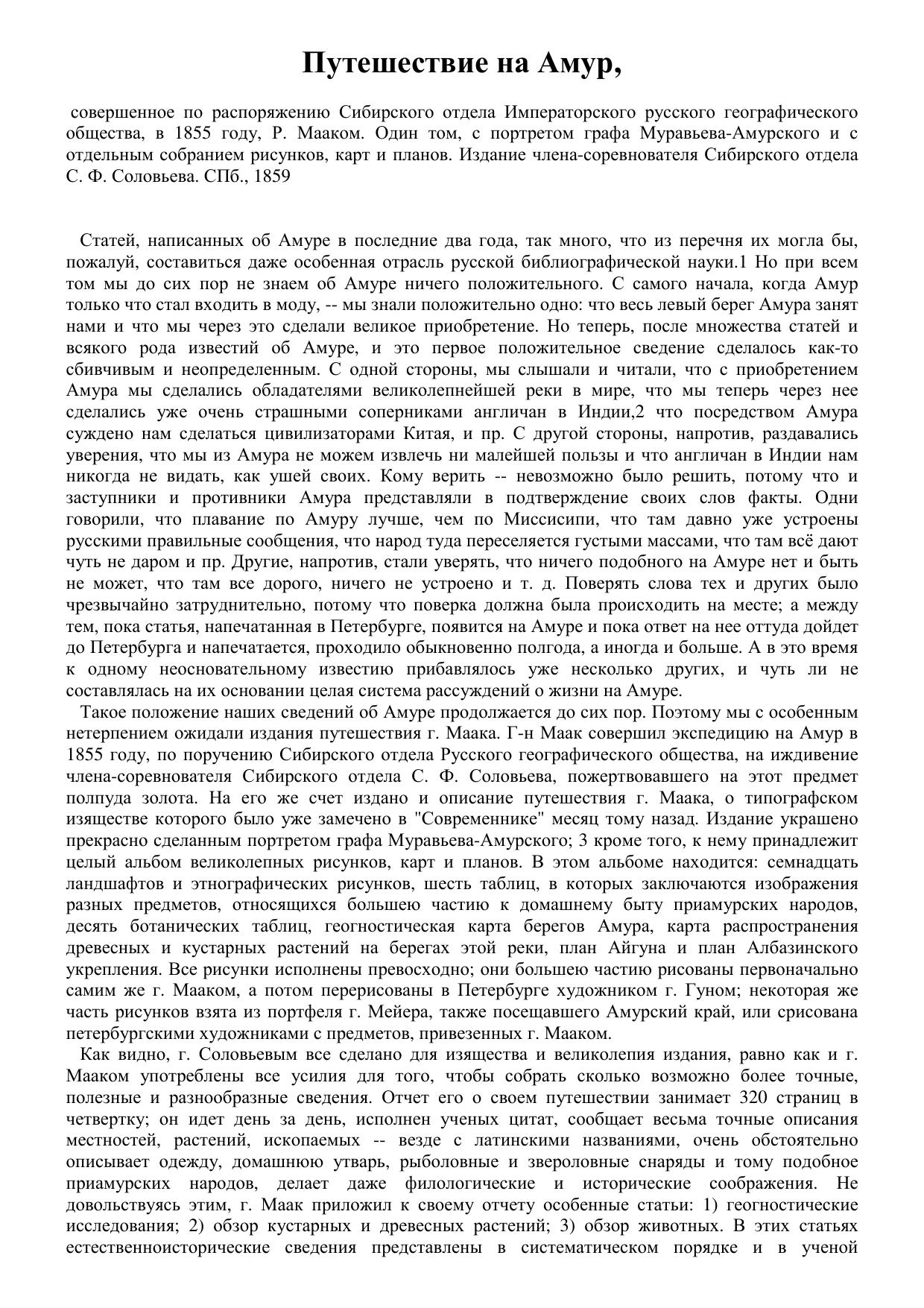 Путешествие на Амур, совершенное по распоряжению Сибирского отдела Императорского русского географического общества, в 1855 году, Р. Мааком