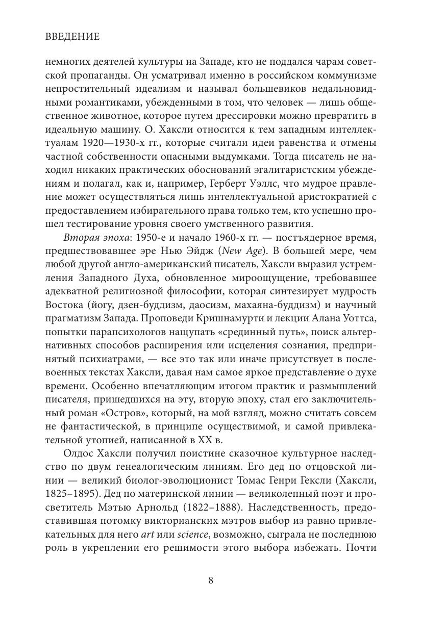 Книга представляет собой психобиографический, историко-культурный и литературоведческий комментарий к самой известной утопии XX в. – романа Олдоса Хаксли «Дивный новый мир» (1932). Футуристический текст Хаксли, в отличие от гораздо более радикального и однонаправленного романа Джорджа Оруэлла «1984», – концентрированное выражение духа модерности, логичное художественное подведение итогов проекта Просвещения. Это первая русскоязычная монография, предлагающая всесторонние комментарии, проясняющие подтексты и контексты этого в высшей степени двусмысленного и жанрово-двойственного романа, а также других, связанных с ним, текстов Хаксли. В книге подробно освещен «роман писателя с наукой», тот взаимообмен идеями, который существовал между ним и его научным окружением. Особое внимание уделено психологическим, биографическим источникам фобий и неврозов писателя, обусловивших его восприятие исторических событий, научных концепций и их применения. «Дивный новый мир», как и другие утопии Хаксли, рассматривается, в частности, как сеансы терапии творчеством, как способ, позволивший ему составить непротиворечивую картину современного мира и разобраться с одолевавшими самого писателя кошмарами.