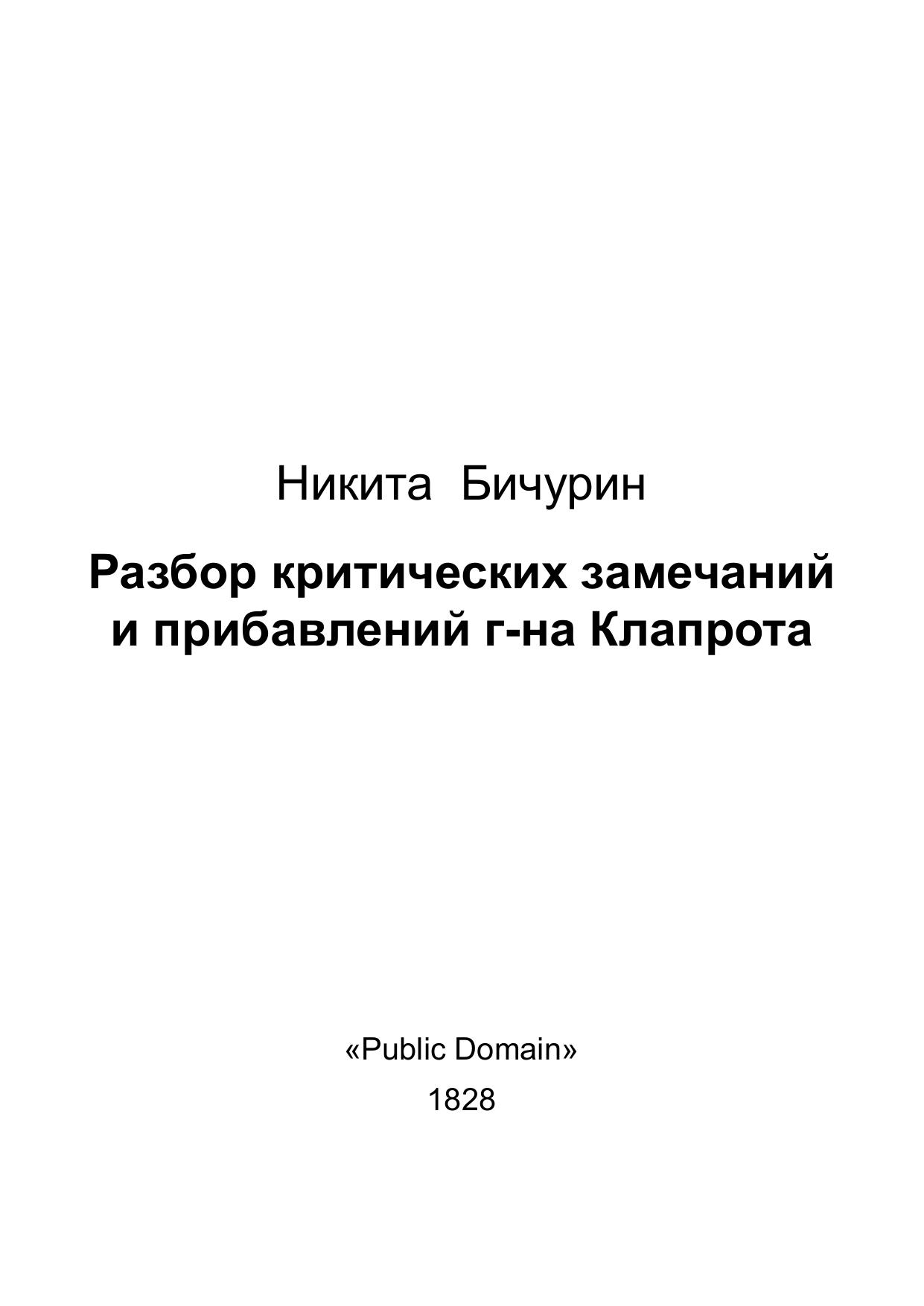 Разбор критических замечаний и прибавлений г-на Клапрота