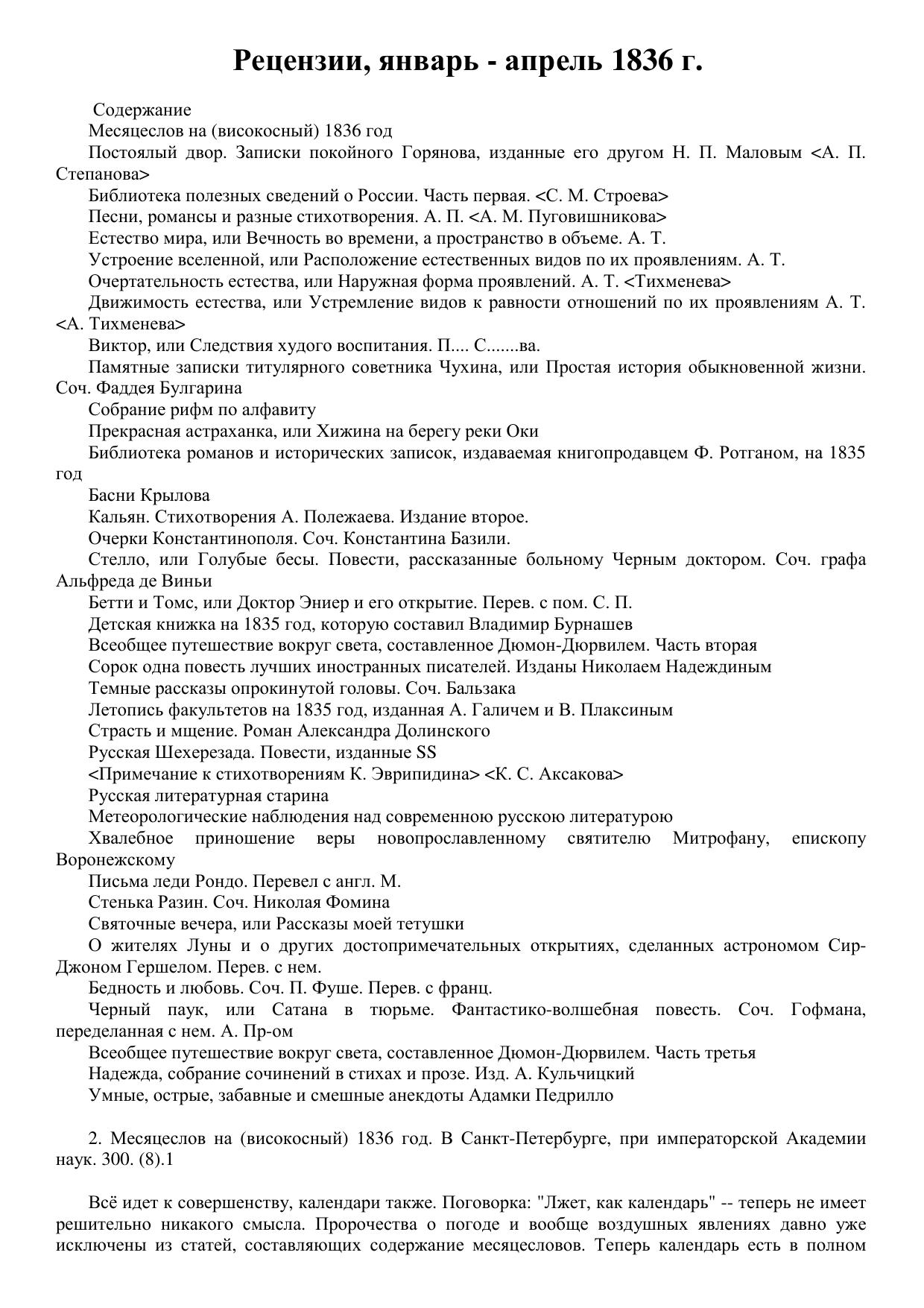 Рецензии, январь - апрель 1836 г. [1836] 196k Критика