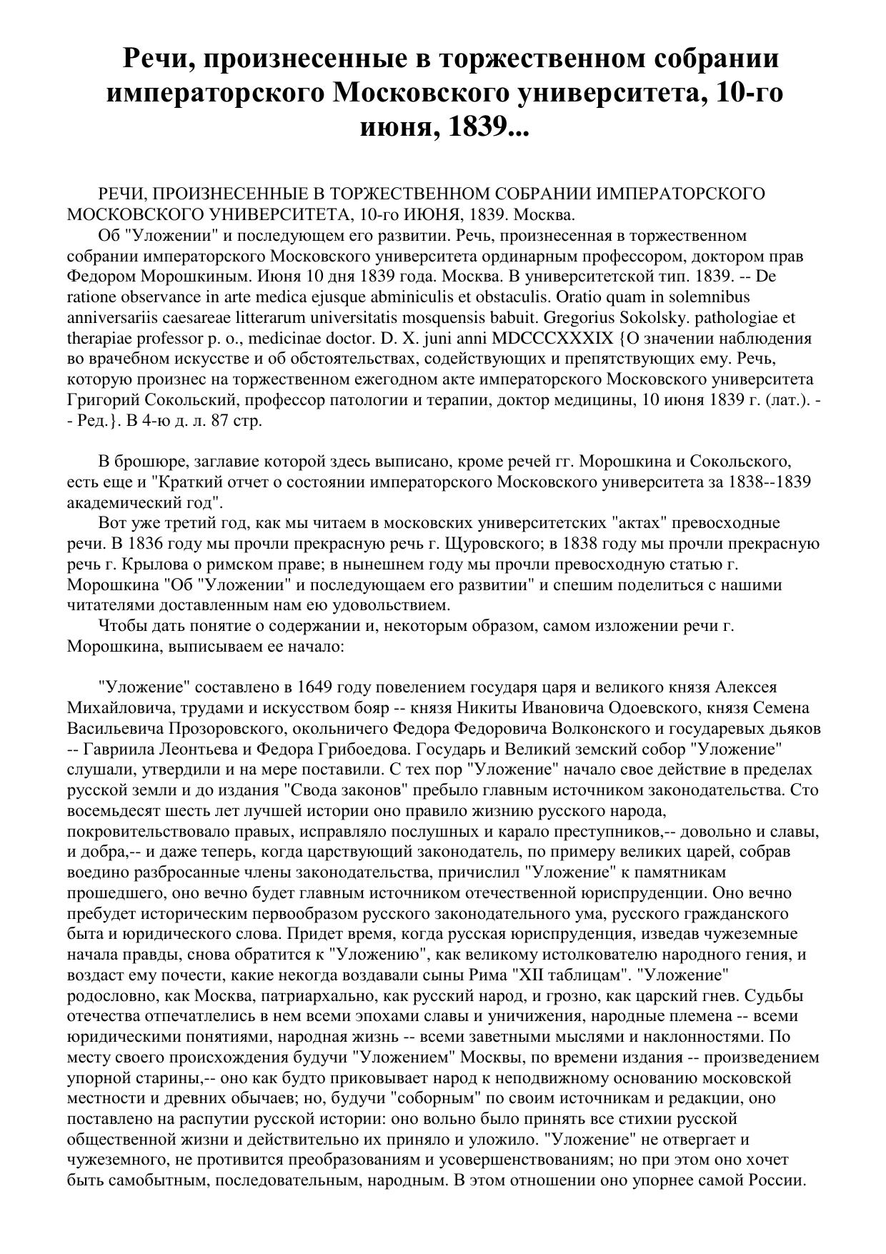 Речи, произнесенные в торжественном собрании императорского Московского университета, 10-го июня, 1839