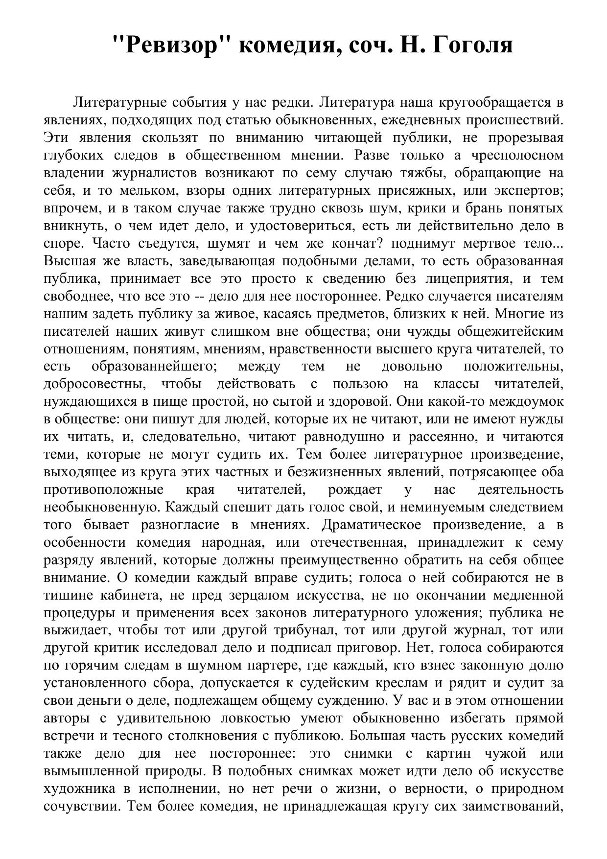 Ревизор комедия, соч. Н. Гоголя