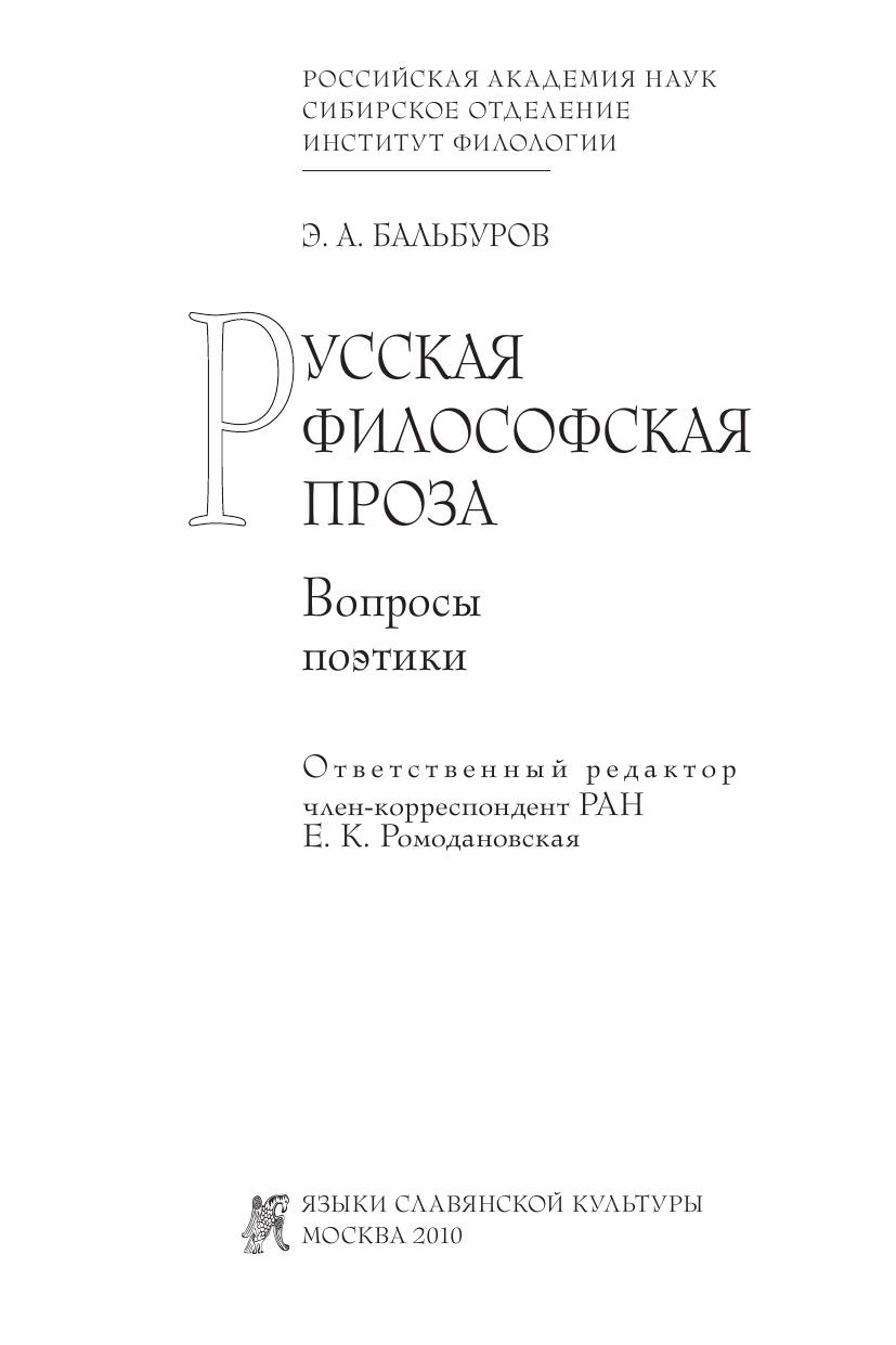 Русская философская проза: Вопросы поэтики