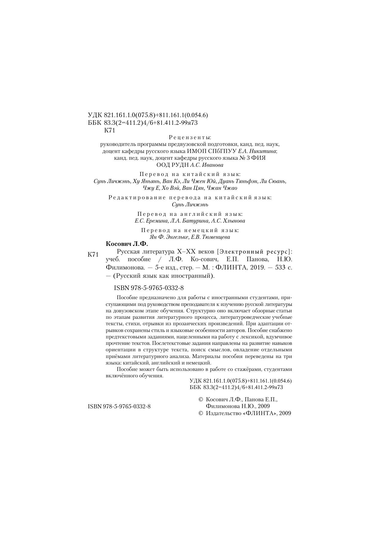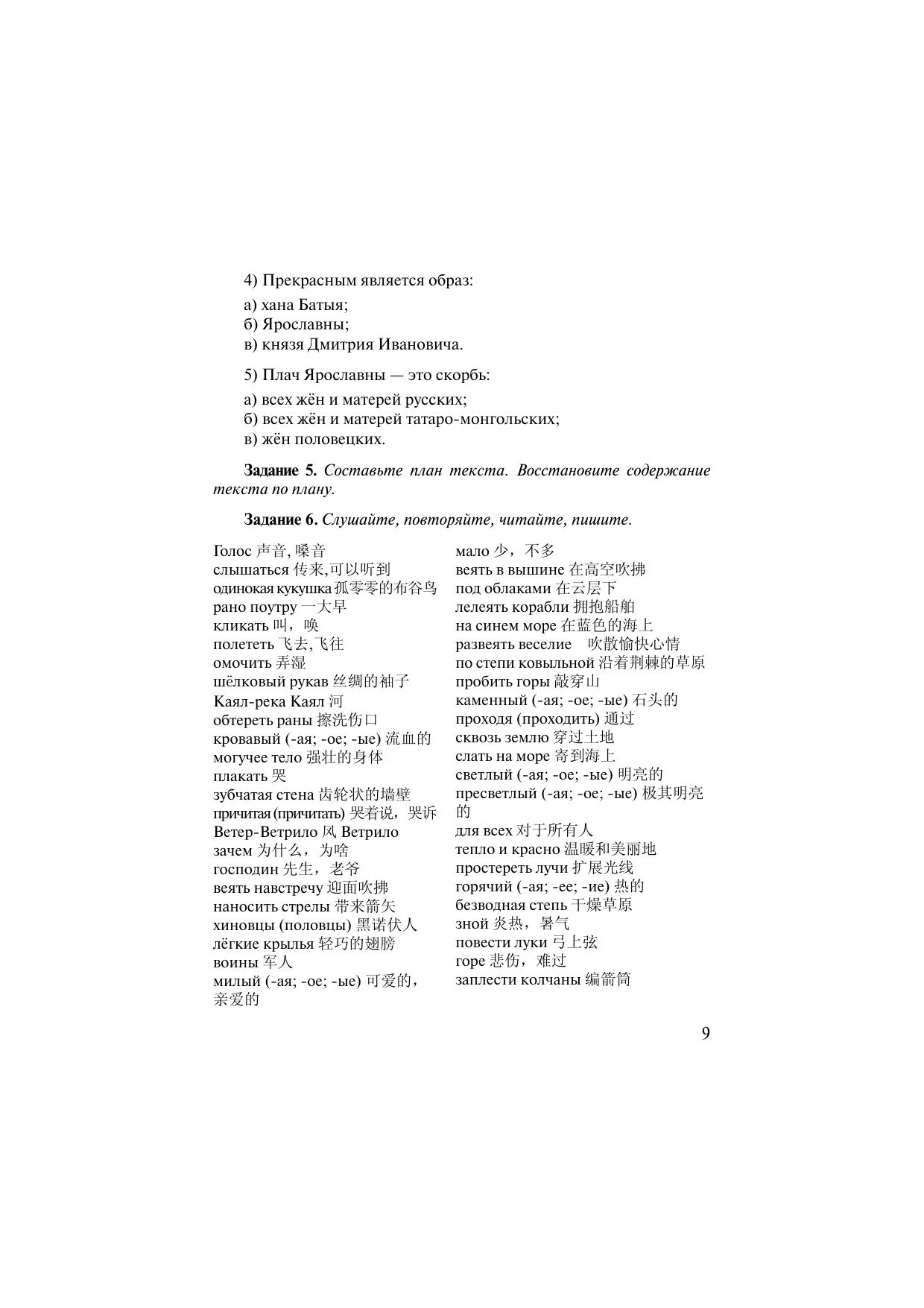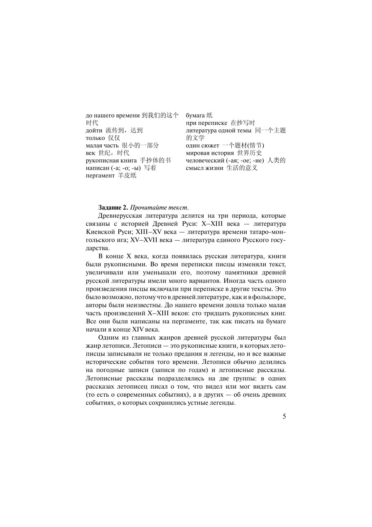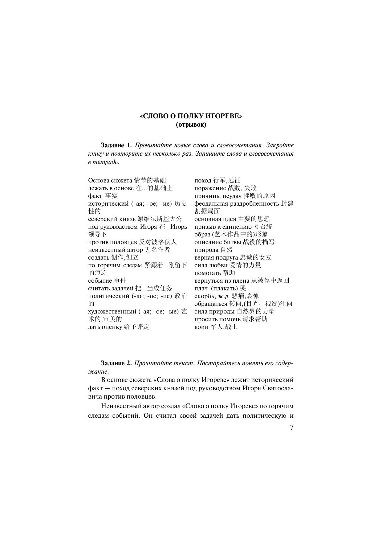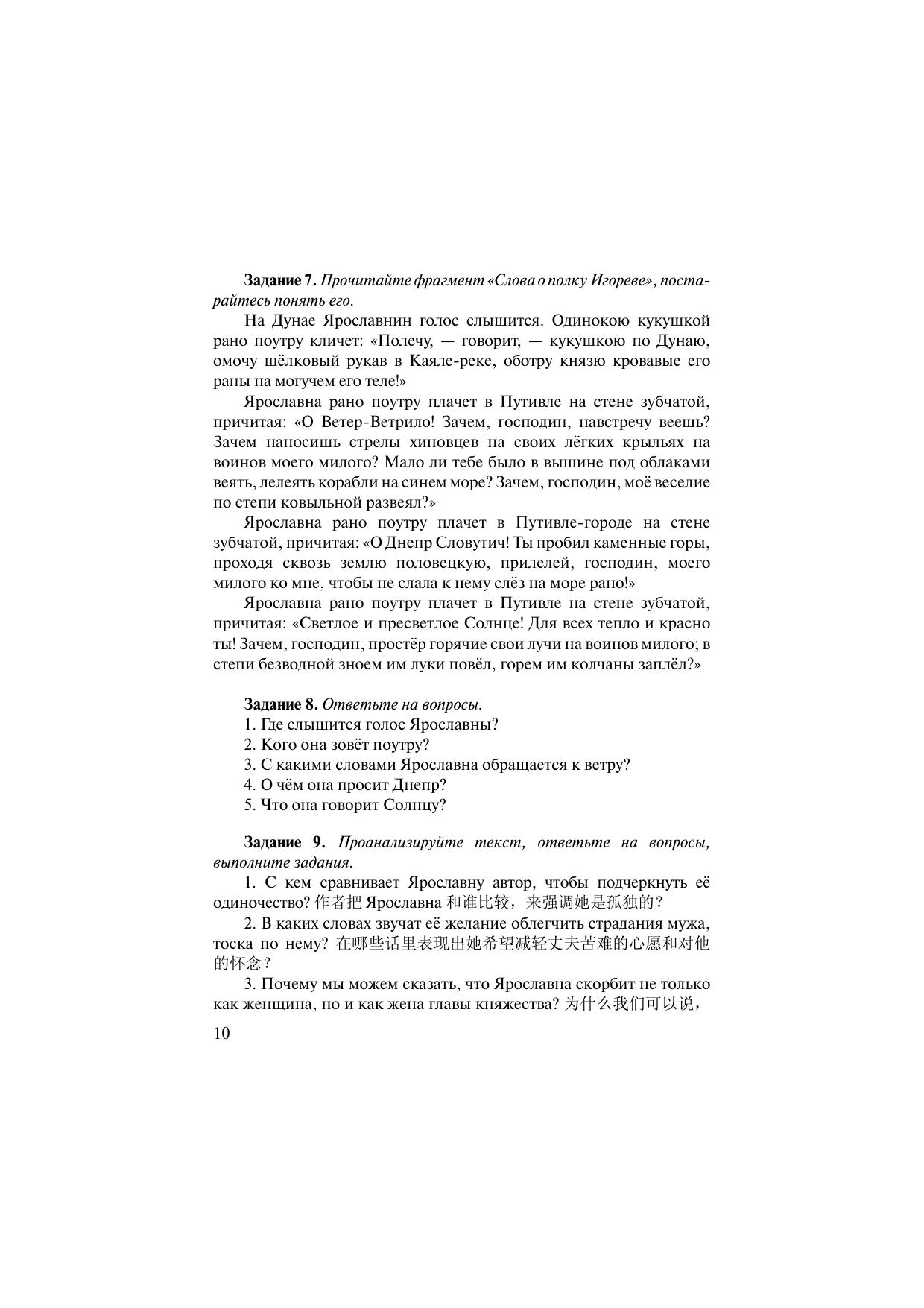 прочтение текстов. Послетекстовые задания направлены на развитие навыков ориентации в структуре текста, поиск смыслов, овладение отдельными приёмами литературного анализа. Материалы пособия переведены на три языка: китайский, английский и немецкий.