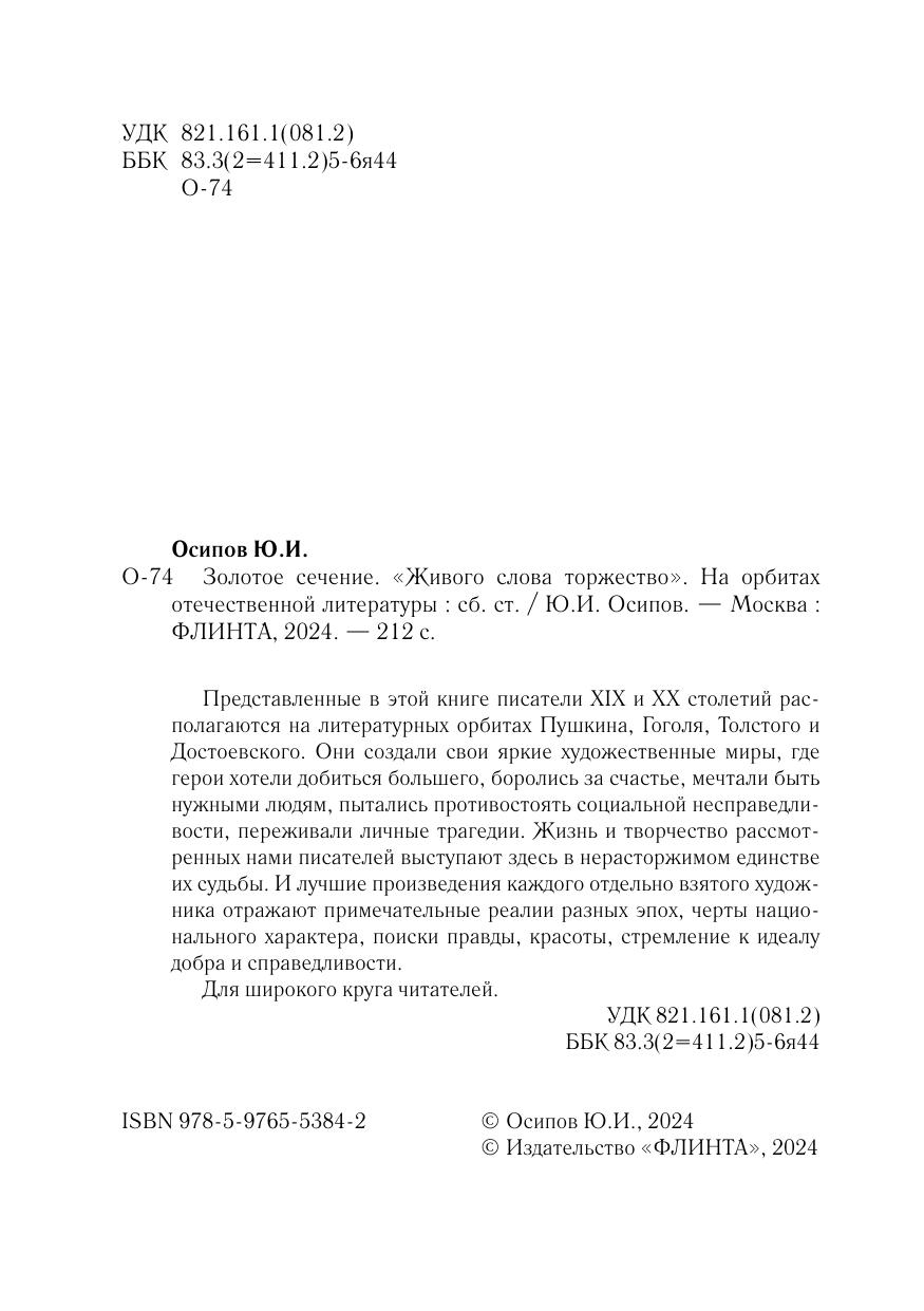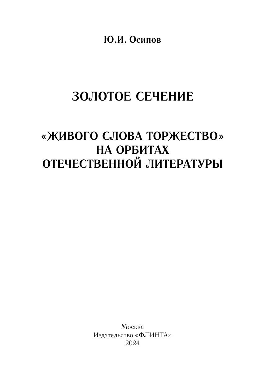 ‟Живого слова торжествоˮ. На орбитах отечественной литературы (Золотое сечение)