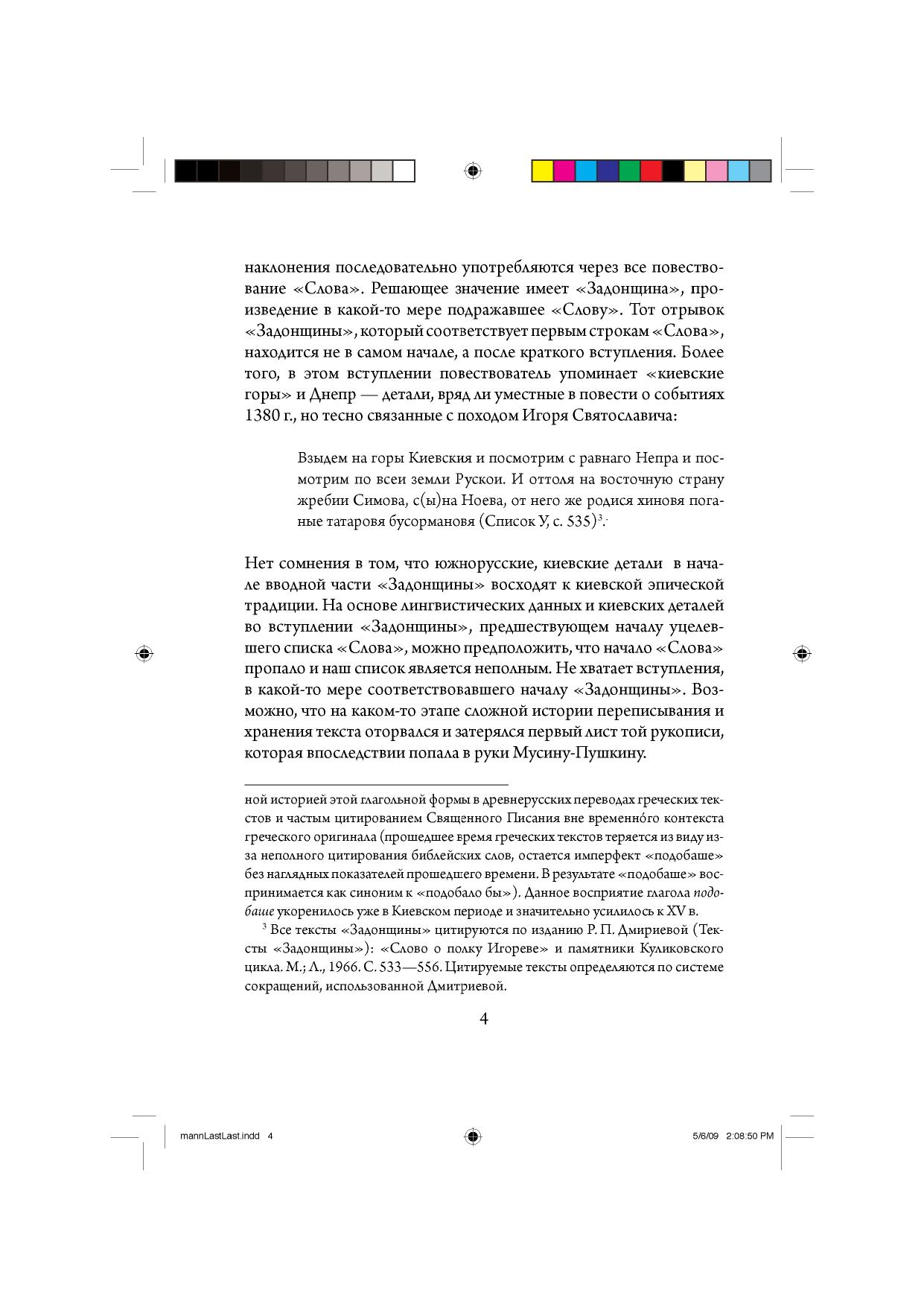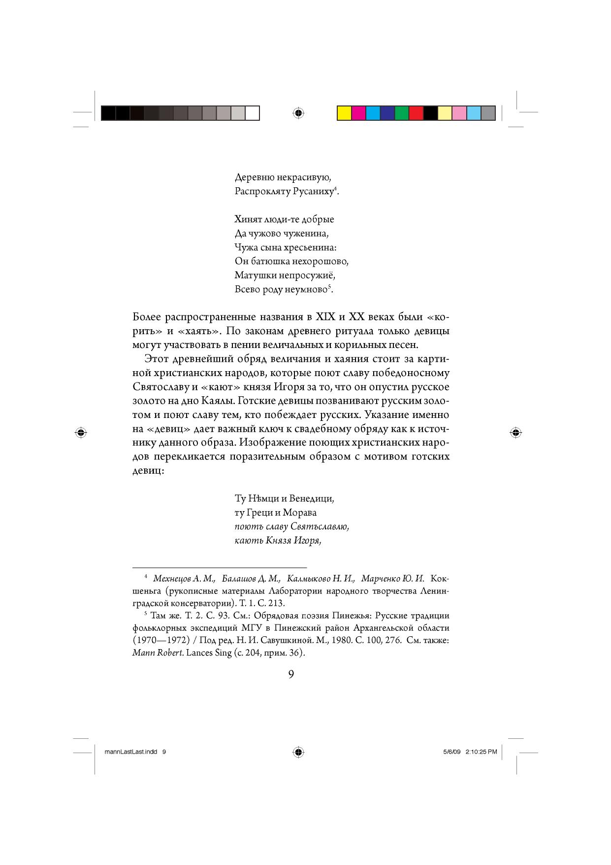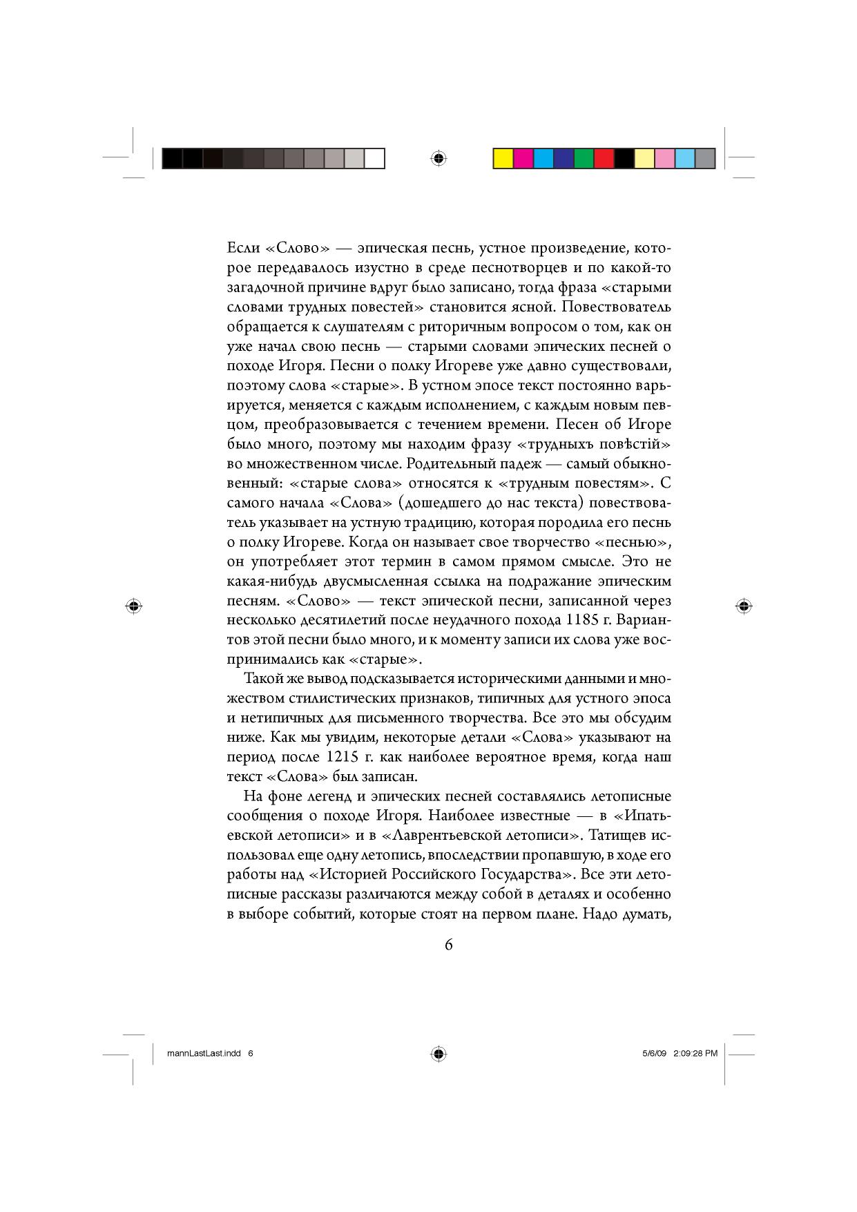 В этой книге американский исследователь выдвигает новую теорию о возникновении "Слова о полку Игореве". Он указывает на ранее незамеченные параллели к тексту "Слова" в народных свадебных песнях и в самом свадебном обряде. Новые параллели, найденные им в былинном эпосе и древнерусских текстах, приводят его к новой реконструкции ранней истории былин о крещении Руси. Автор оспаривает широко принятый взгляд на "Слово" как на гениальную письменную поэму Киевского периода и пытается показать, что повесть о поражении Игорева войска впервые возникла как эпическая песнь и долгое время передавалась изустно, часто меняясь по форме и содержанию. На каком-то этапе - не раньше 1215 г., по мнению Манна, - слова песни были записаны. Летописные сводки о битве 1185 г. отражают не письменный текст "Слова", а различные варианты эпической песни о походе Игоря. Р.Манн находит ключ к некоторым из загадочных терминов "Слова" - таким как хинова, Каяла - в древнерусском свадебном обряде, послужившем важным референтом в метафорической канве "Слова". Он указывает на необыкновенные отголоски песни о полку Игореве в уникальном тексте "Сказания о Мамаевом побоище", изданном в 1835 г., а впоследствии проигнорированном учеными. Текст 1835 г., по мнению Манна, - из ранней редакции, послужившей прототипом для всех известных редакций "Сказания". Для широкого круга читателей.