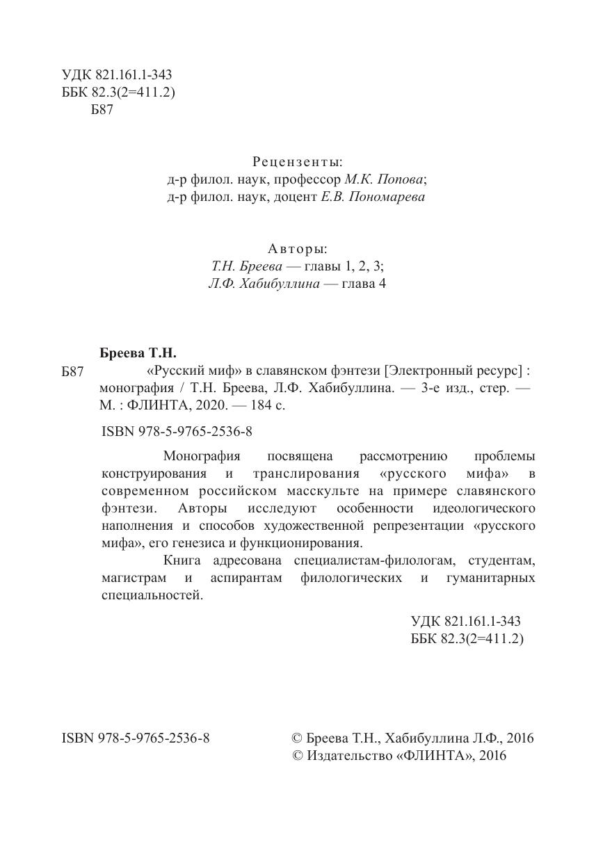 Монография посвящена рассмотрению проблемы конструирования и транслирования «русского мифа» в современном российском масскульте на примере славянского фэнтези. Авторы исследуют особенности идеологического наполнения и способов художественной репрезентации «русского мифа», его генезиса и функционирования.