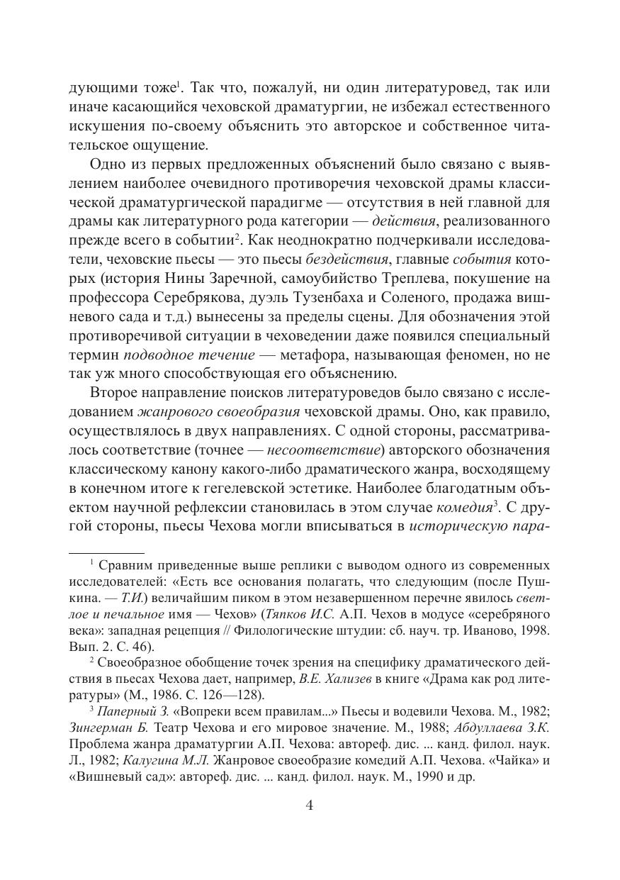 В книге впервые системно рассматриваются четыре «главные» чеховские пьесы с неожиданной для теории классической драмы точки зрения — взаимодействия основного текста с традиционно факультативным «паратекстом» (список действующих лиц, ремарки, открывающие и сопровождающие