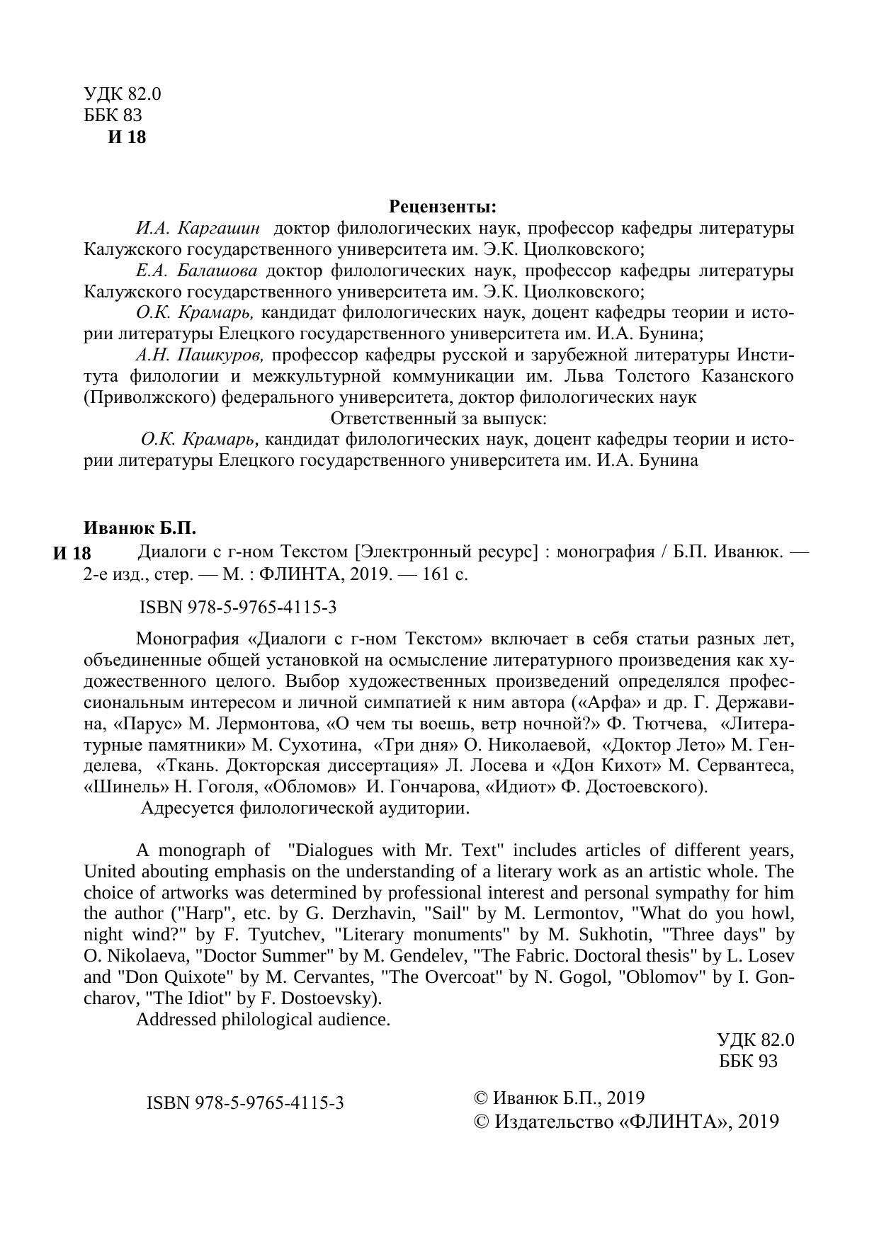 Монография «Диалоги с г-ном Текстом» включает в себя статьи разных лет, объединенные общей установкой на осмысление литературного произведения как ху-