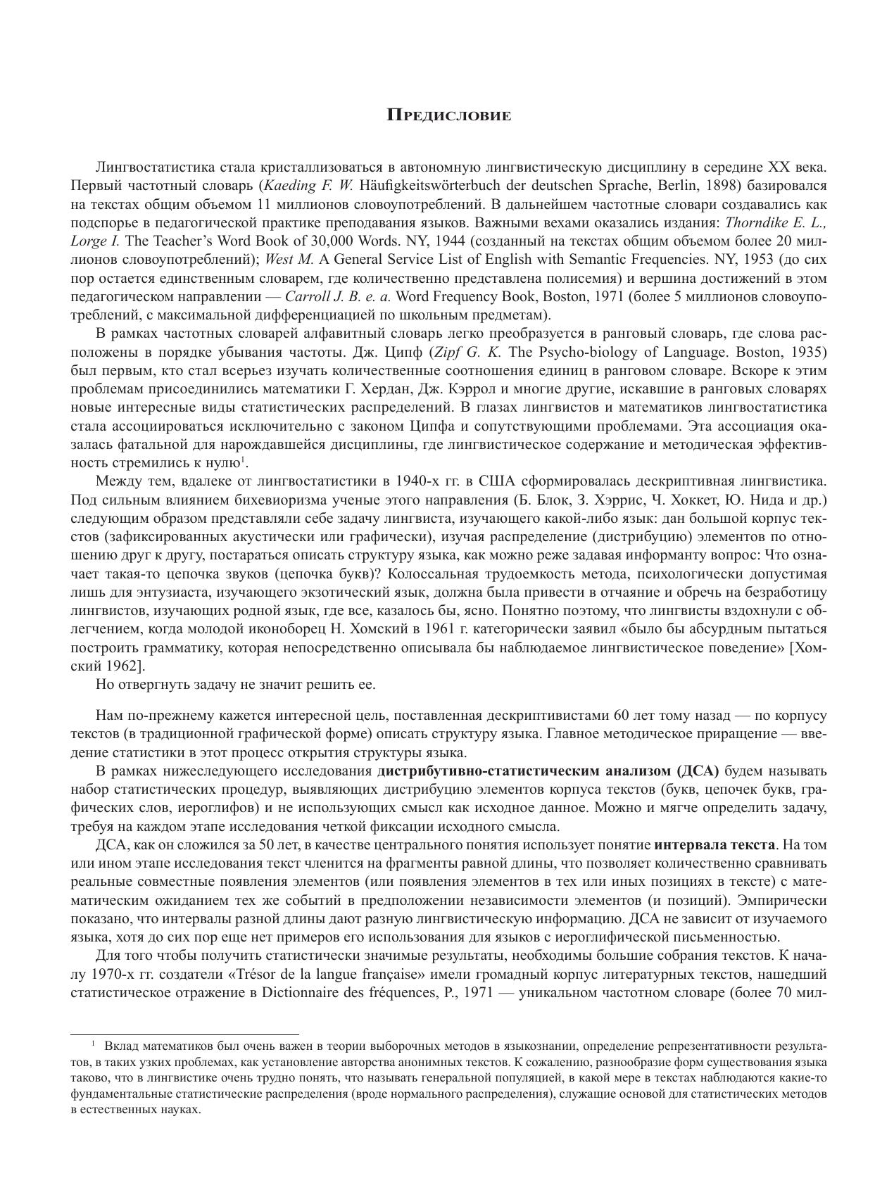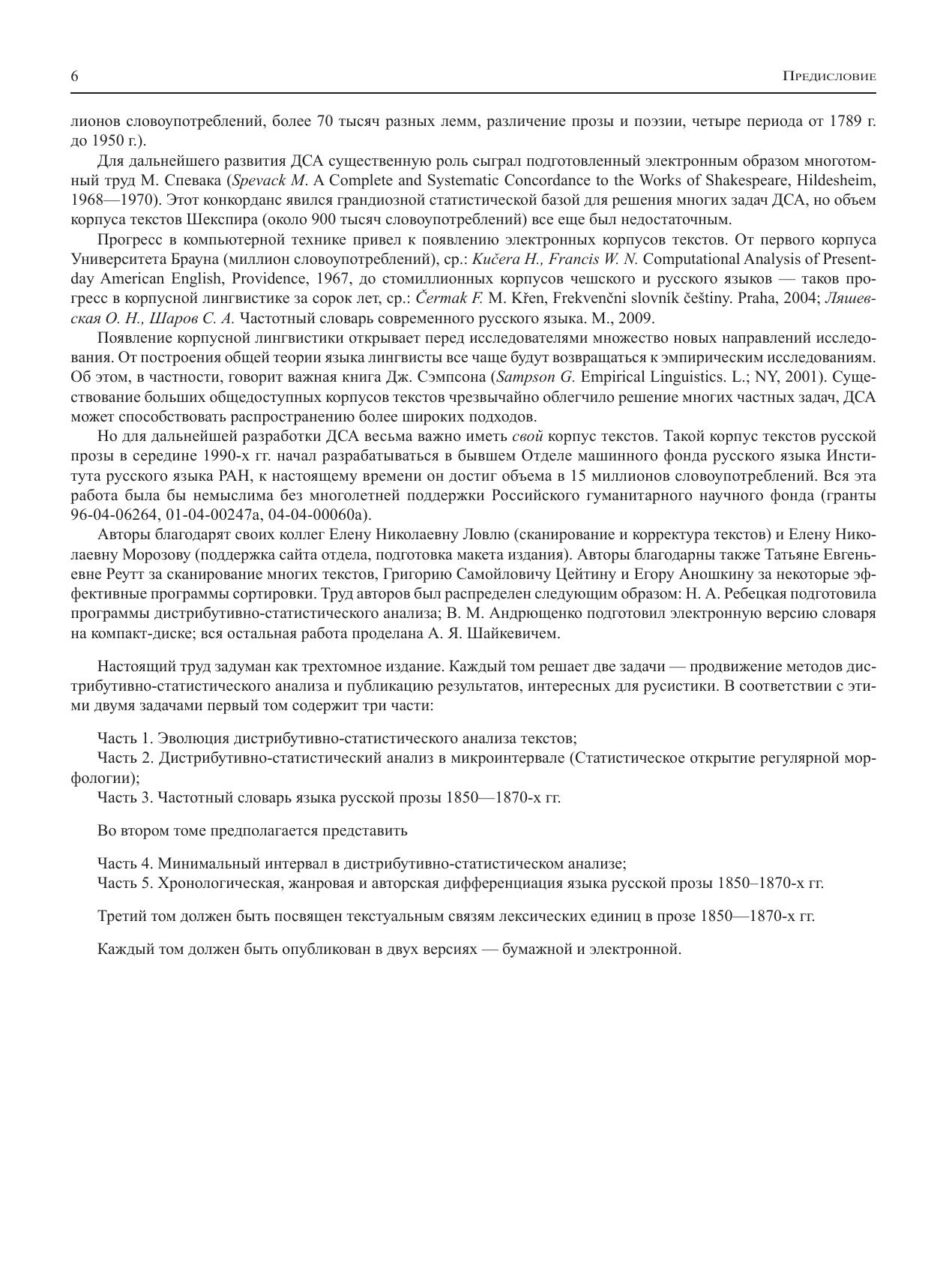 ель дистрибутивно-статистического анализа состоит в открытии структуры языка на основе большого корпуса текстов. В настоящей трехтомной монографии этот формальный метод в полной мере прилагается к текстам русской прозы 1850-1870 гг. (около 15 млн словоупотреблений), а частично (в виде иллюстраций) к текстам на других языках. Первый том включает три части: Очерк развития метода, Открытие регулярной морфологии в рамках графического слова, Частотный словарь языка русской прозы 1850-1870 гг. Первые две части адресованы лингвистам, особенно тем, кто интересуется лингвостатистикой. Частотный словарь будет интересен филологам-русистам.