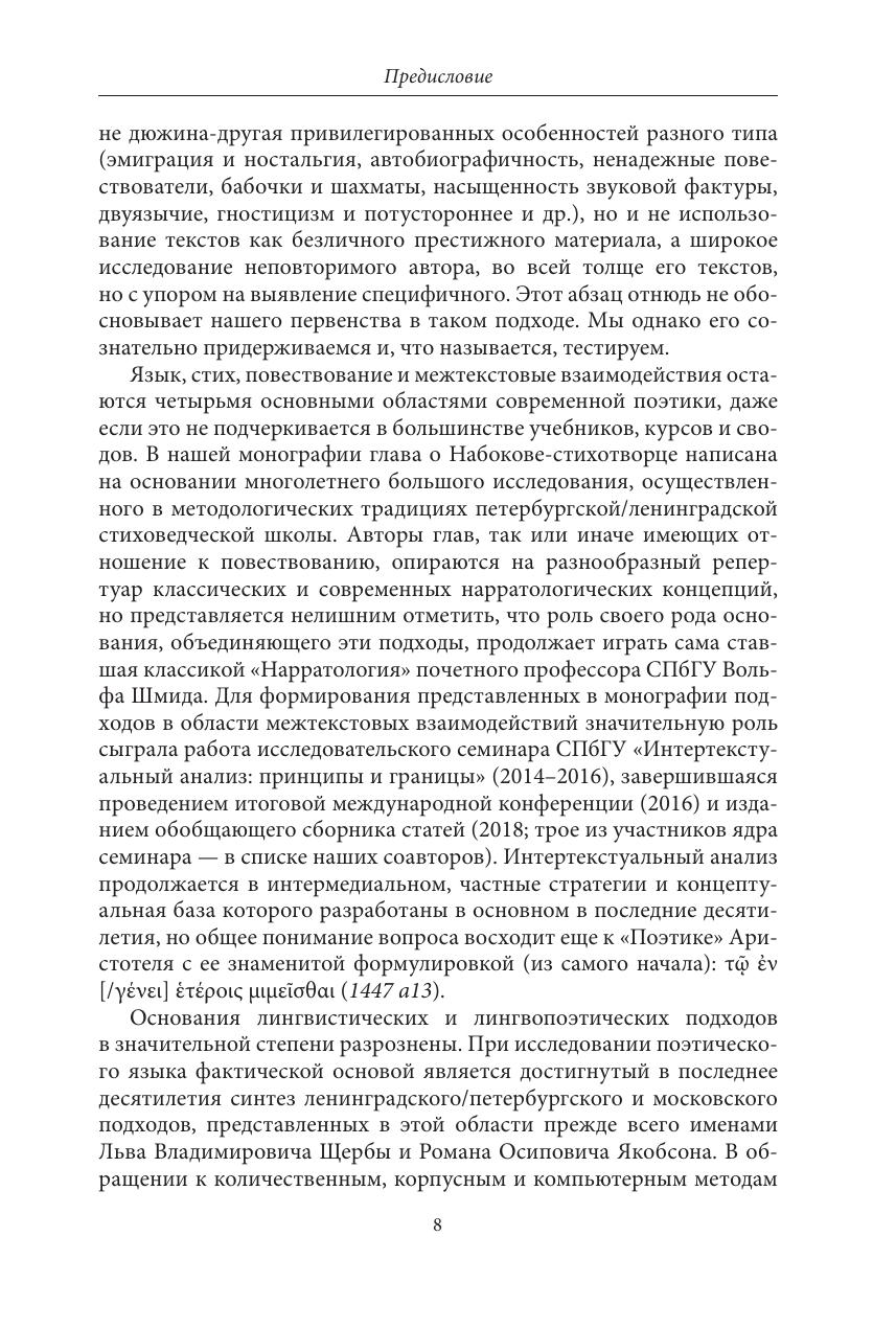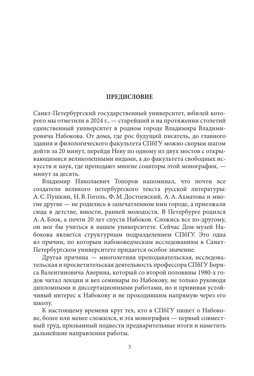 Разделы монографии посвящены ряду проблем в изучении творчества В.В. Набокова, на сегодняшний день еще не получивших должной научной разработки. В то время как отечественная и западная критика сосредоточилась главным образом на романах писателя, авторы издания - сотрудники СПбГУ, авторитетные ученые, на протяжении многих лет занимавшиеся проблемами творчества Набокова, - обращаются к рассказам и стихам великого классика, а также к его интерпретациям, выдвигая ряд новых оригинальных версий относительно его наследия. Книга предназначена для специалистов-филологов, а также для широкого круга читателей, интересующихся творчеством Набокова.