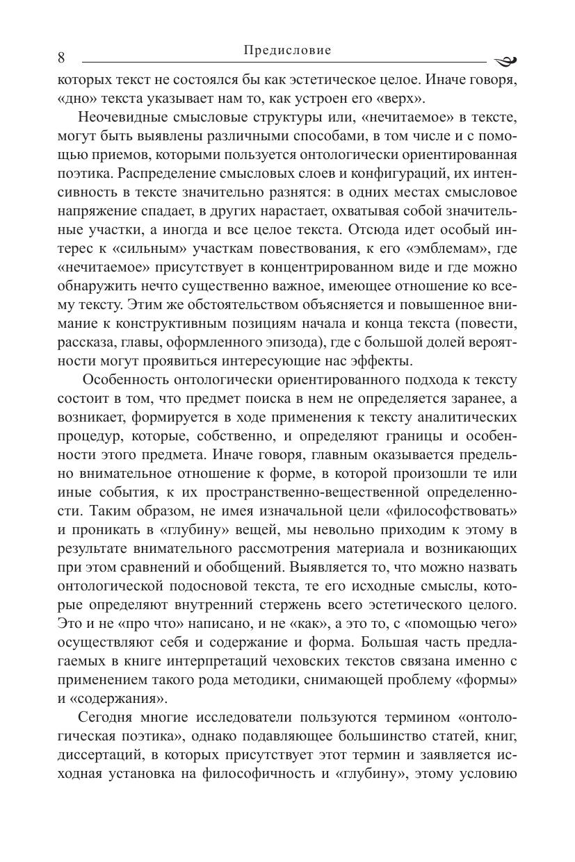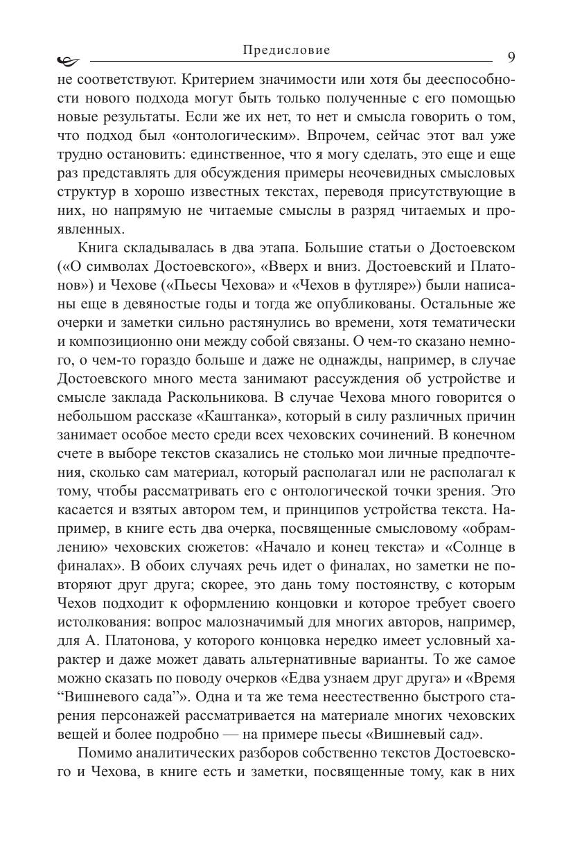 Книга посвящена анализу неочевидных смысловых структур, присутствующих во многих романах Достоевского и пьесах Чехова. Неочевидные смысловые структуры выявляются с помощью определенных процедур на фоне подчеркнутого внимания к тому, в какой именно форме представлены действия и высказывания персонажей и к той обстановке, в которой они совершаются. Авторская персональная онтология и мифология – вот главный предмет исследования. Книга адресована филологам, философам, искусствоведам, культурологам, всем, кто интересуется вопросами психологии творчества и теоретической поэтики.