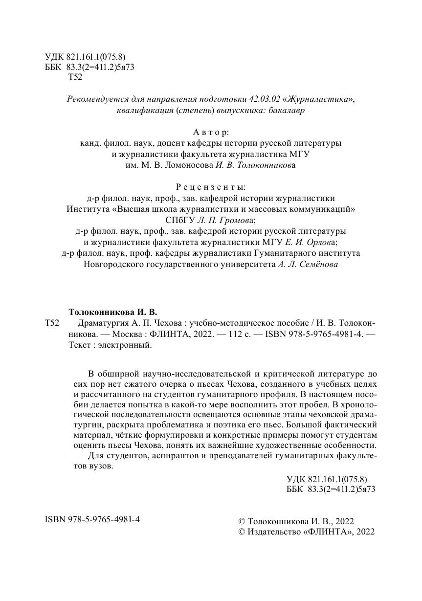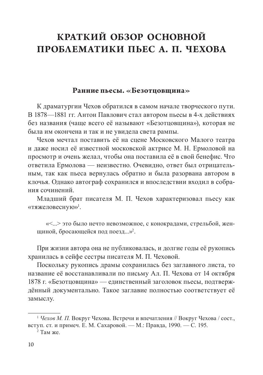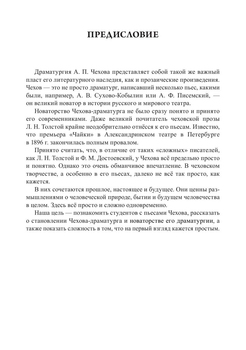 В обширной научно-исследовательской и критической литературе до сих пор нет сжатого очерка о пьесах Чехова, созданного в учебных целях и рассчитанного на студентов гуманитарного профиля. В настоящем пособи и делается попытка в какой-то мере восполнить этот пробел. В хронологической последовательности освещаются основные этапы чеховской драматургии, раскрыта проблематика и поэтика его пьес. Большой фактический материал, чёткие формулировки и конкретные примеры помогут студентам оценить пьесы Чехова, понять их важнейшие художественные особенности.