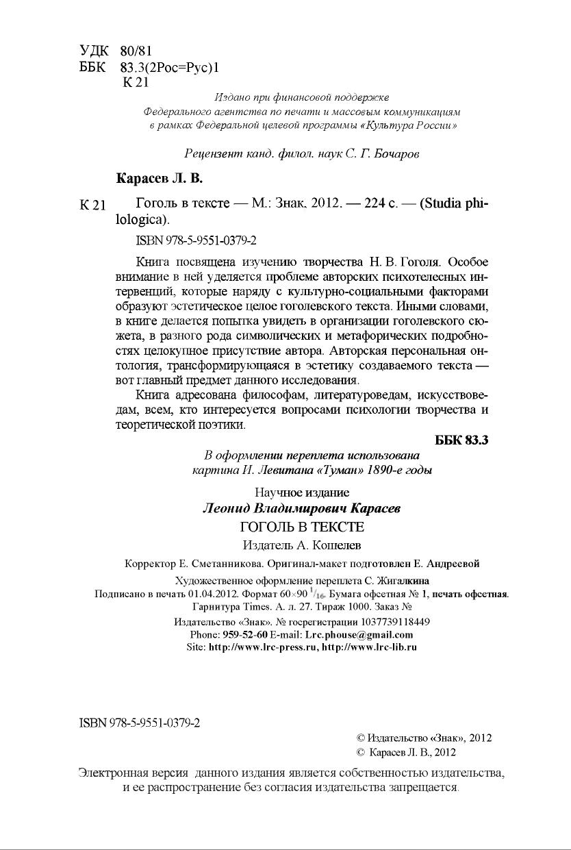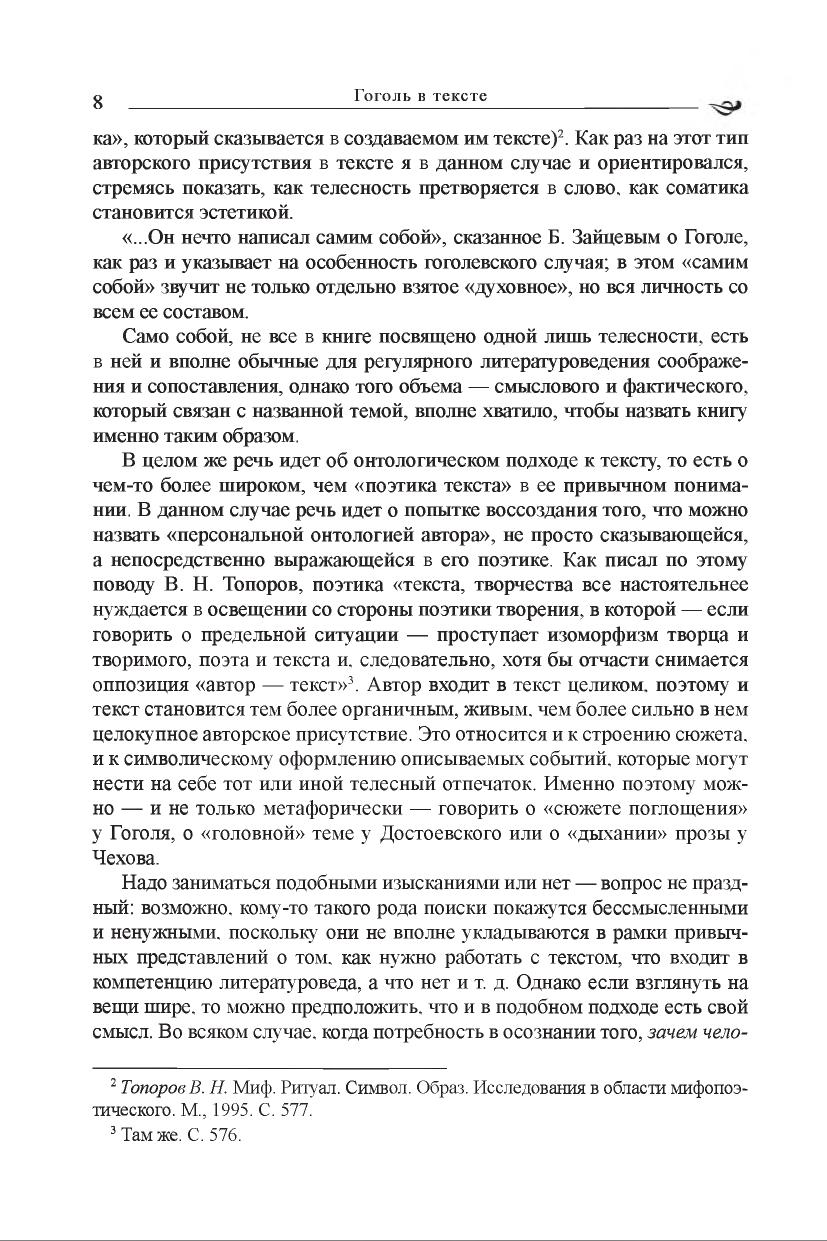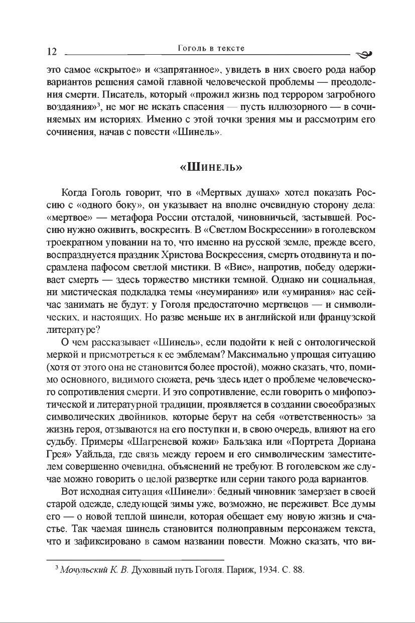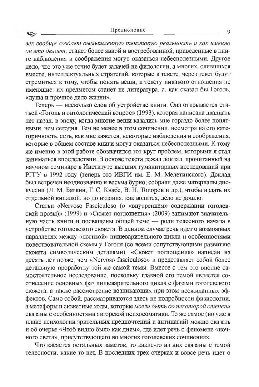 Книга посвящена изучению творчества Н.В. Гоголя. Особое внимание в ней уделяется проблеме авторских психотелесных интервенций, которые наряду с культурно-социальными факторами образуют эстетическое целое гоголевского текста. Иными словами, в книге делается попытка увидеть в организации гоголевского сюжета, в разного рода символических и метафорических подробностях целокупное присутствие автора. Авторская персональная онтология, трансформирующаяся в эстетику создаваемого текста - вот главный предмет данного исследования. Книга адресована философам, литературоведам, искусствоведам, всем, кто интересуется вопросами психологии творчества и теоретической поэтики.