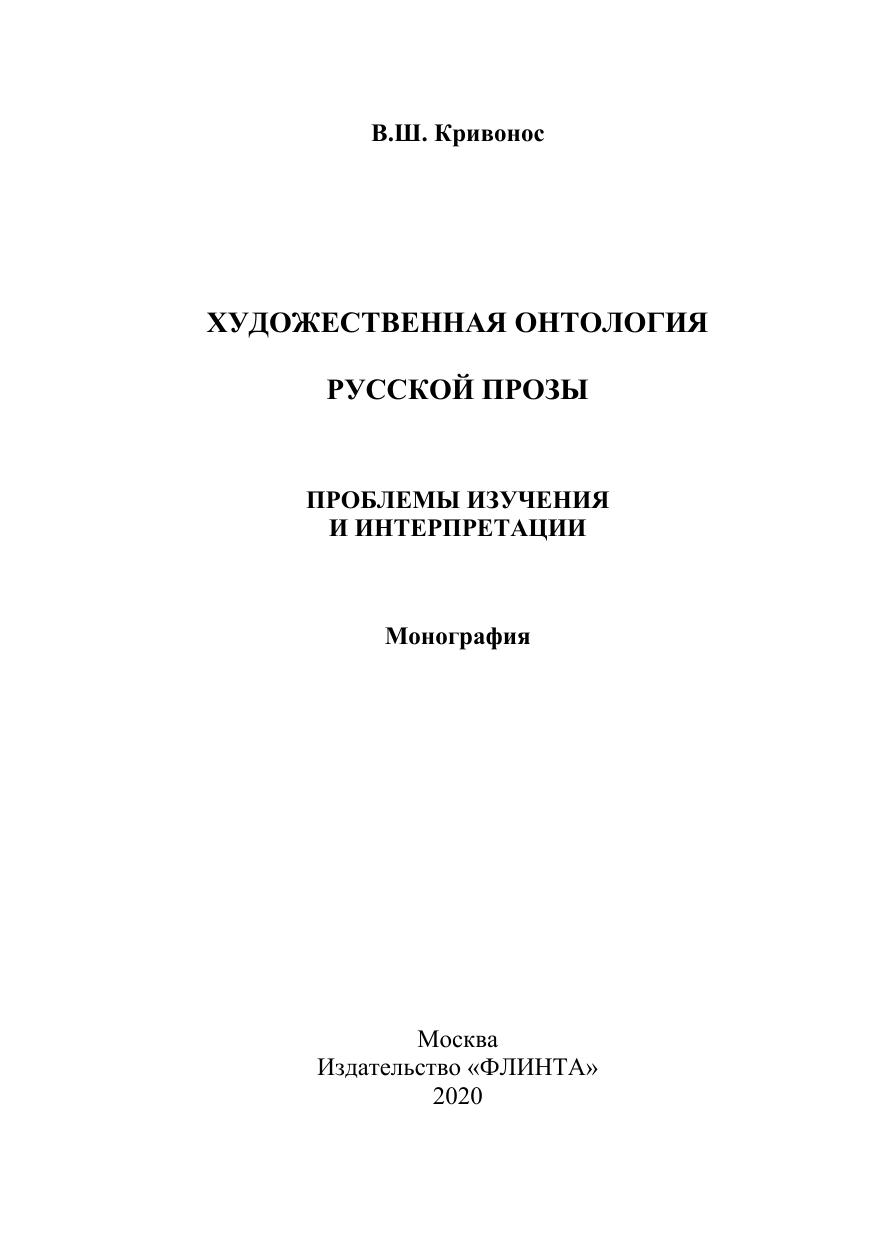 Художественная онтология русской прозы. Проблемы изучения и интерпретации