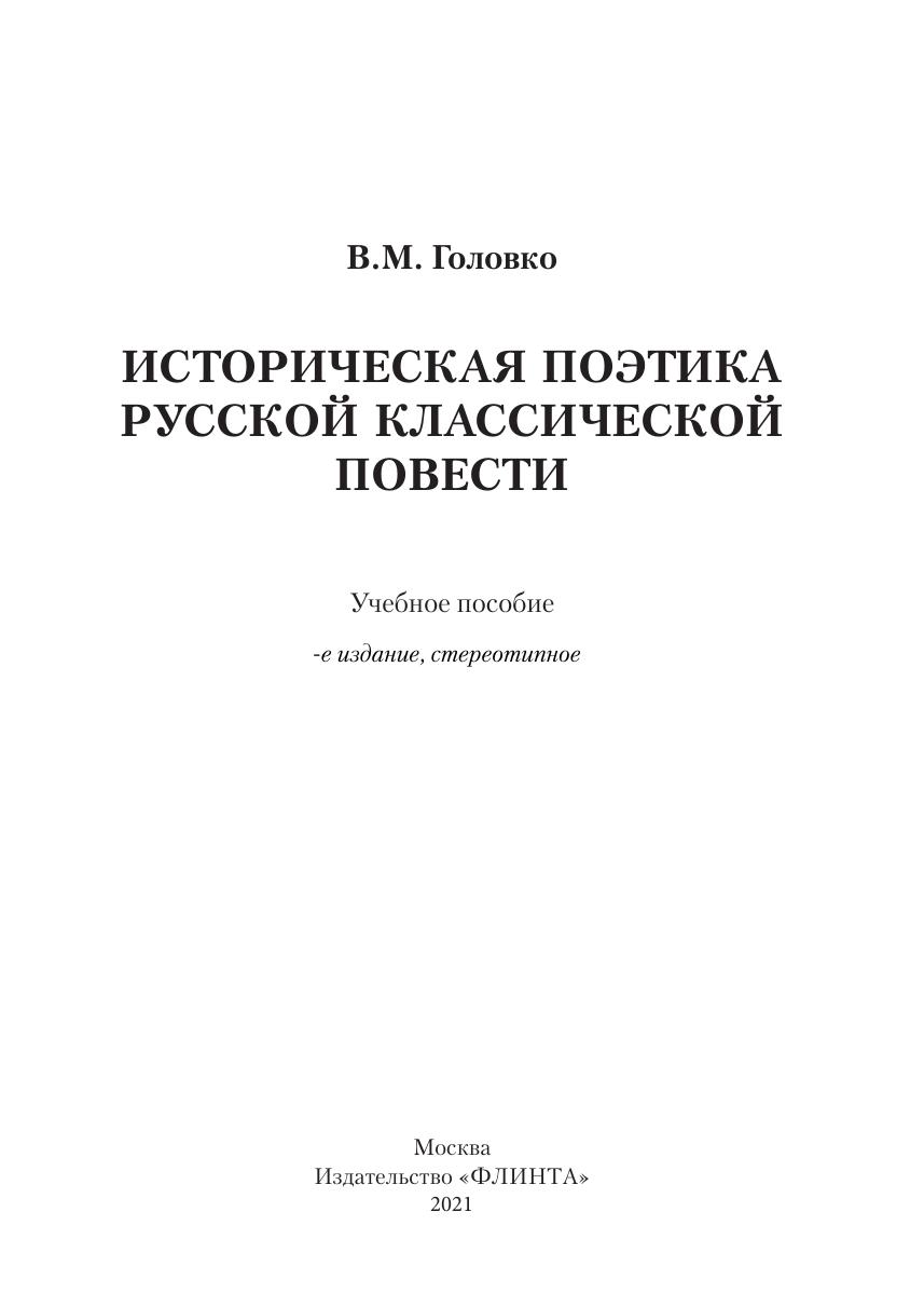 Историческая поэтика русской классической повести