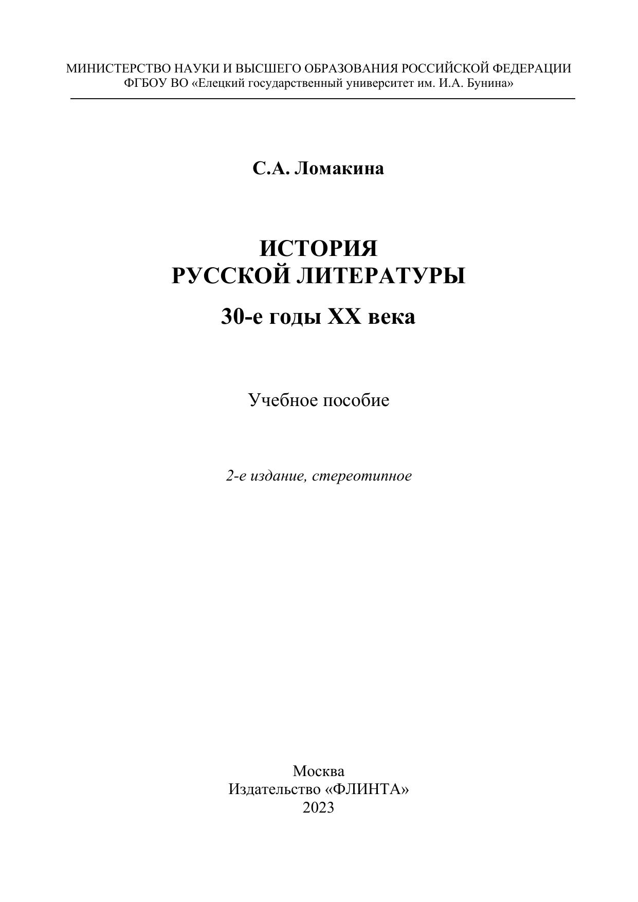 История русской литературы ХХ века: 30-е годы