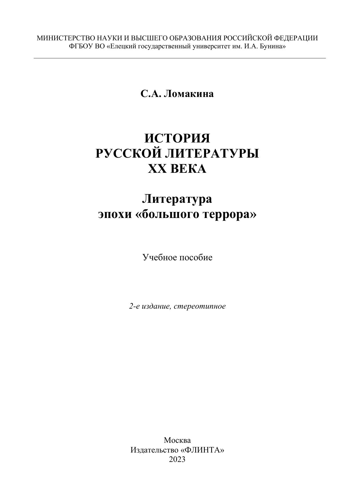 История русской литературы ХХ века: Литература эпохи «большого террора»