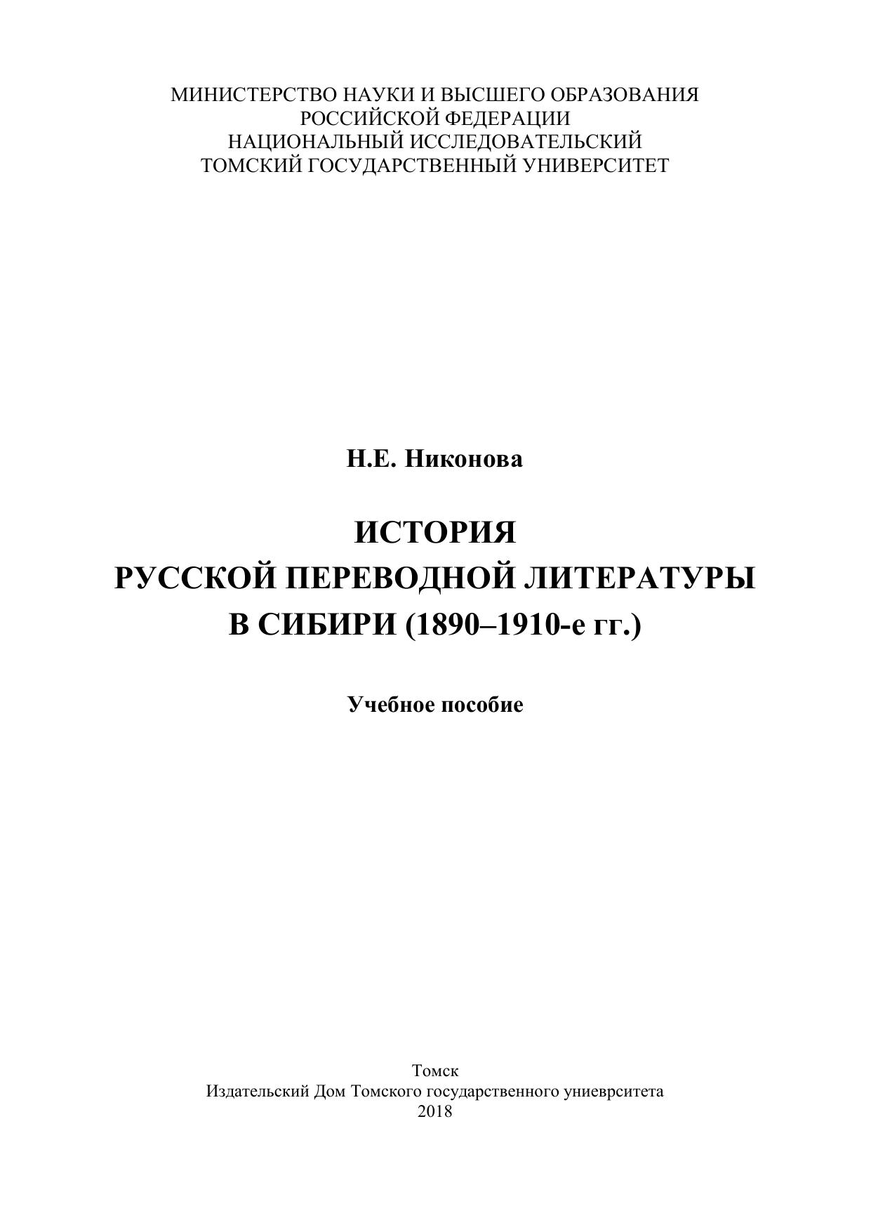 История русской переводной литературы в Сибири (1890–1910-е гг.)