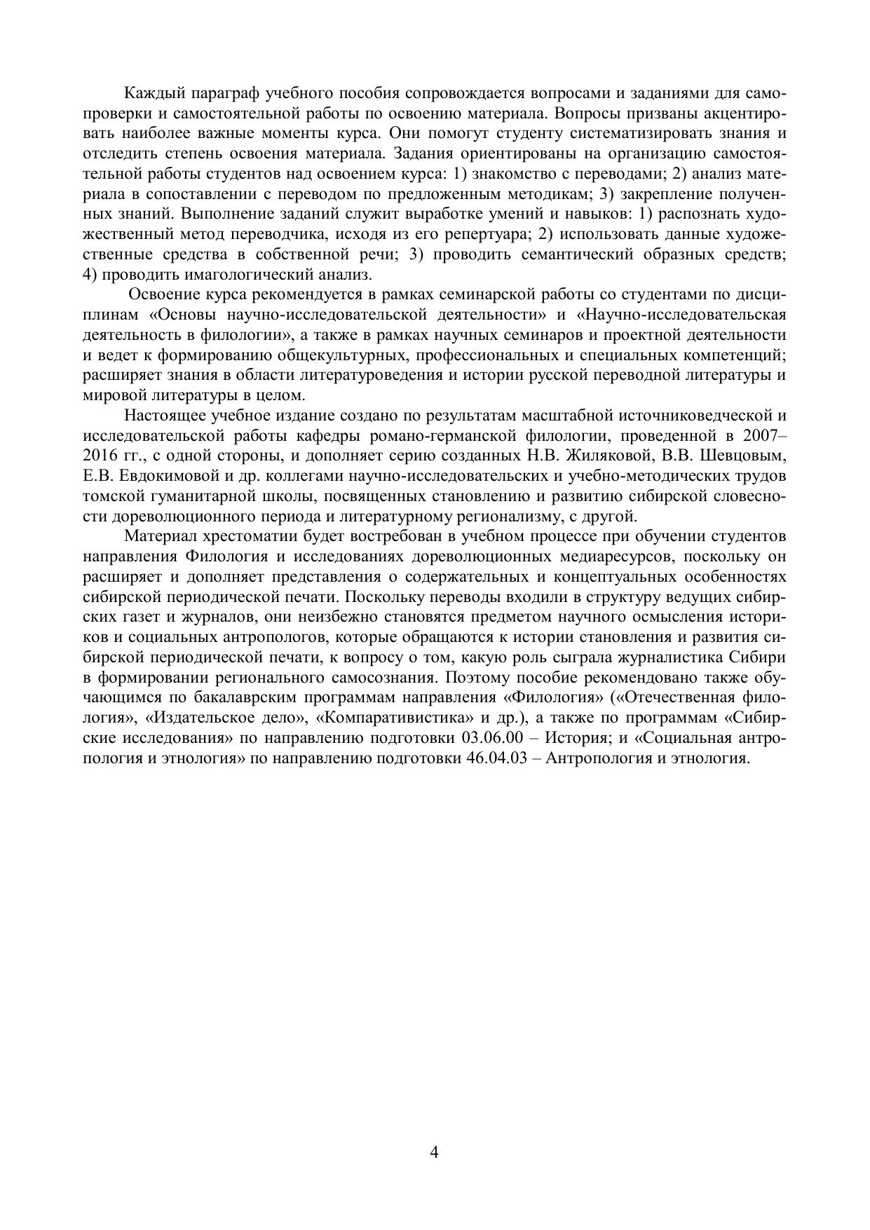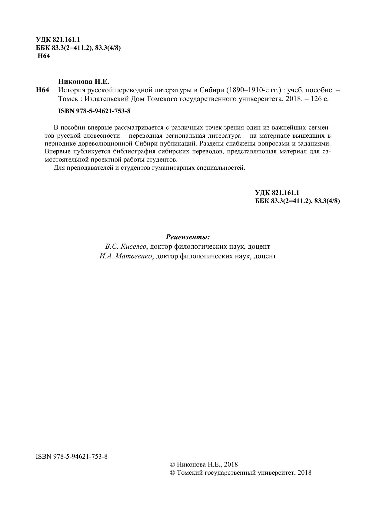 В пособии впервые рассматривается с различных точек зрения один из важнейших сегментов русской словесности – переводная региональная литература – на материале вышедших в периодике дореволюционной Сибири публикаций. Разделы снабжены вопросами и заданиями. Впервые публикуется библиография сибирских переводов, представляющая материал для самостоятельной проектной работы студентов. Для преподавателей и студентов гуманитарных специальностей.