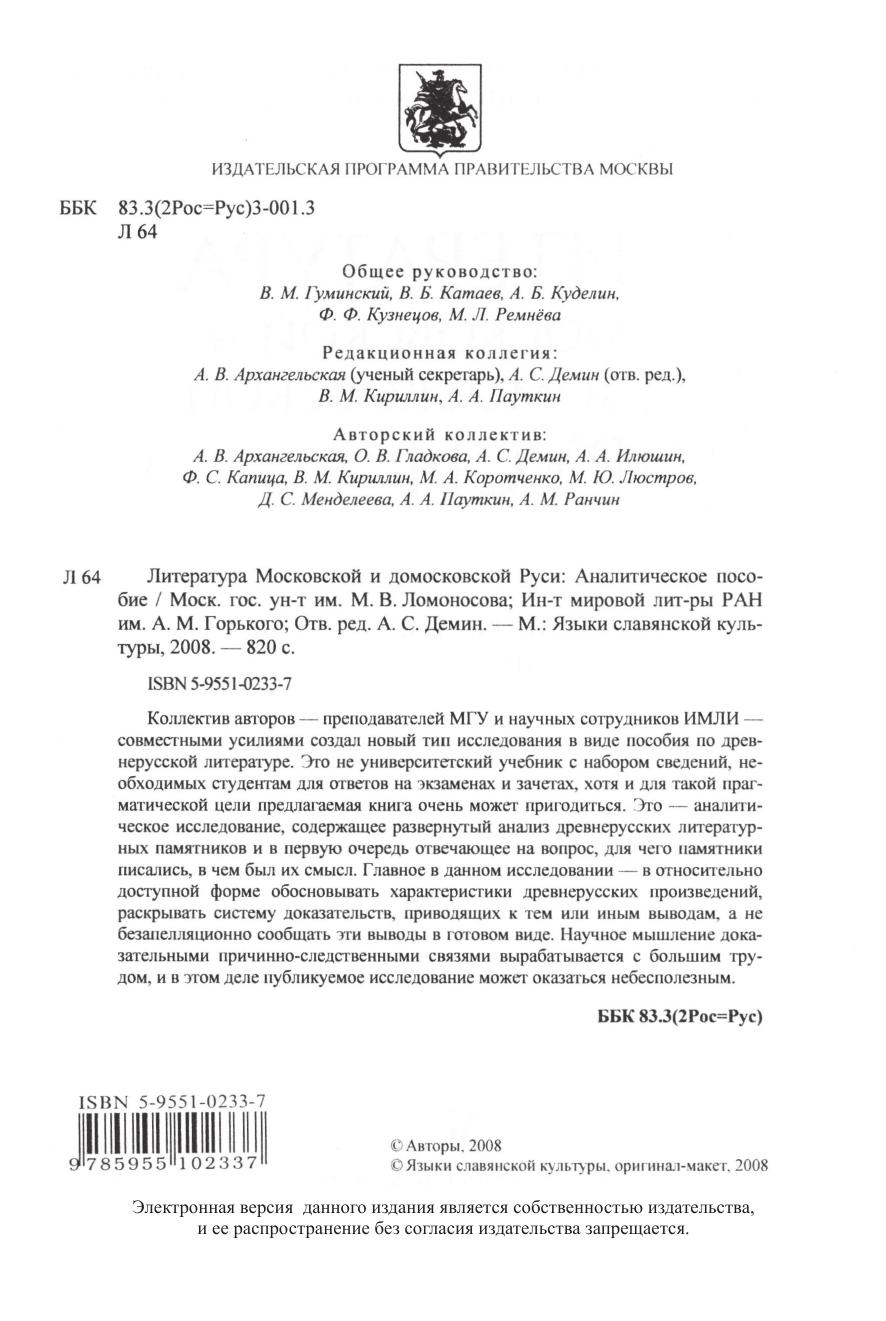 Литература Московской и домосковской Руси: Аналитическое пособие