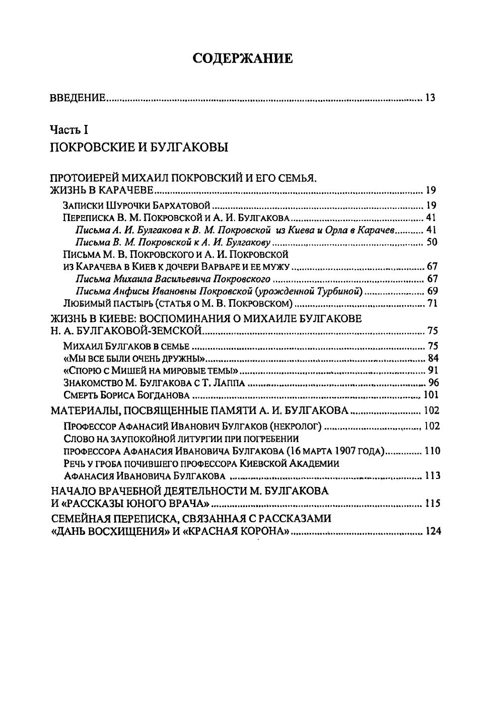 Монография основана на материалах архива семьи Булгаковых, которые собирала, хранила и исследовала сестра писателя Надежда Афанасьевна Булгакова-Земская (1893—1971). Книга состоит из двух частей. Первая часть содержит публикацию документов разного рода: это письма писателя М. Булгакова и адресованные к нему письма родных и друзей, письма его родителей, братьев, сестер, дневники членов семьи, воспоминания о жизни семьи в Карачеве на рубеже XIX—XX вв., воспоминания о М. Булгакове, рассказы его братьев Николая и Ивана об эмиграции, некрологи на смерть деда М. Булгакова о. Михаила Покровского и на смерть его отца проф. Афанасия Ивановича Булгакова, также две статьи М. Булгакова: «Грядущие перспективы» (1919) и «Театральный Октябрь» (1920). Публикуемые в книге материалы существенно дополняют сведения о М. Булгакове и о многих членах его семьи (дед и бабушка, мать и отец, младшая сестра матери Шурочка Бархатова, братья и сестры писателя), воссоздают не только атмосферу, царившую в доме родителей М. Булгакова, но и картину жизни русской интеллигенции и духовенства конца XIX – начала XX вв., раскрывают влияние семьи и города Киева на жизнь и творчество будущего писателя. Вторая часть монографии содержит анализ материалов архива с историко-культурной и лингвистической точки зрения. Исследуются язык и стиль документов рубежа ХIХ—XX вв., которые представляют интерес для историка русского литературного языка. В книгу включено более ста иллюстраций. Монография предназначена для всех, кто интересуется жизнью и творчеством Михаила Булгакова, а также для читателей, которых интересует история русской культуры, языка и быта конца XIX – первой трети XX вв.
